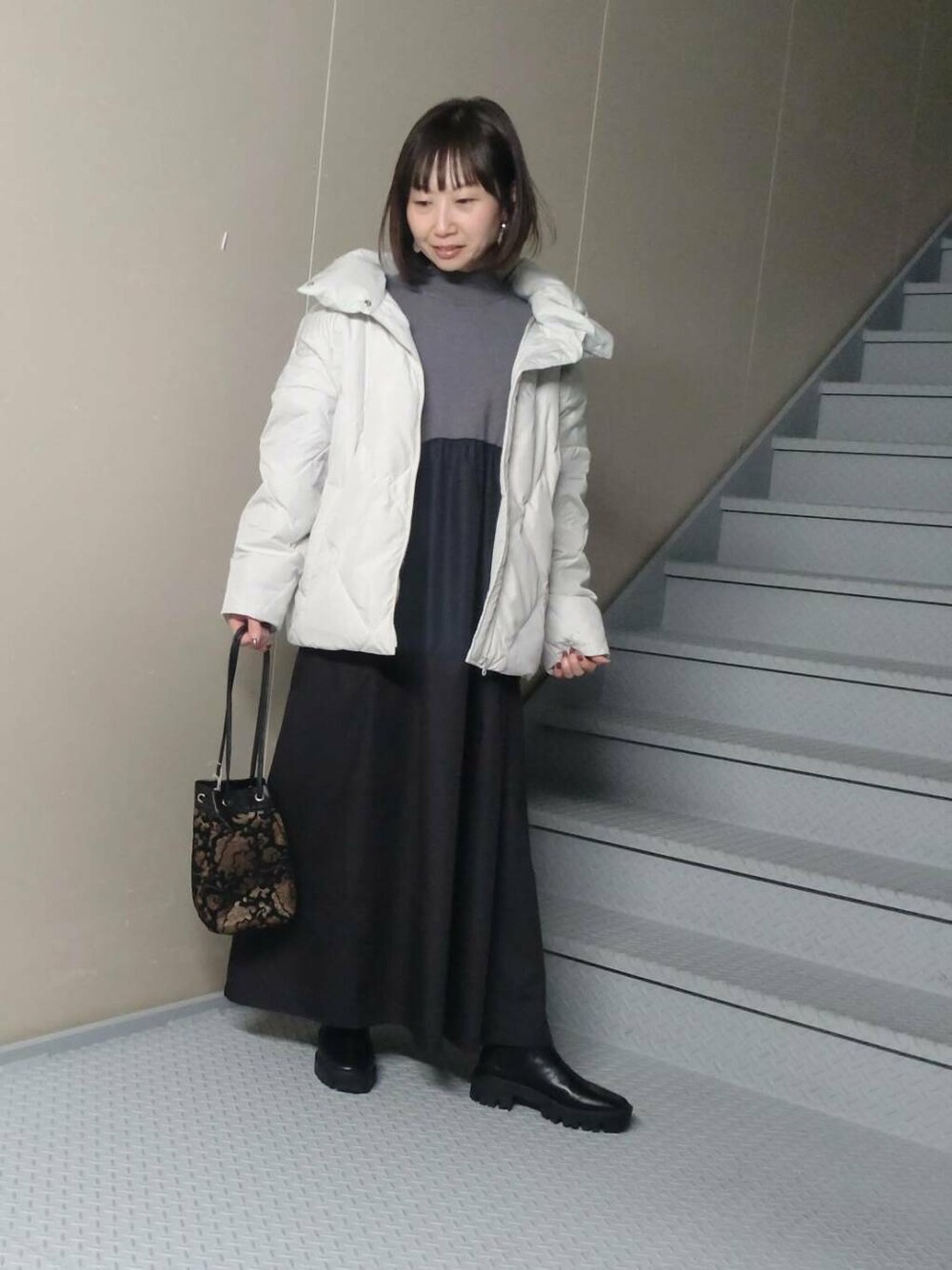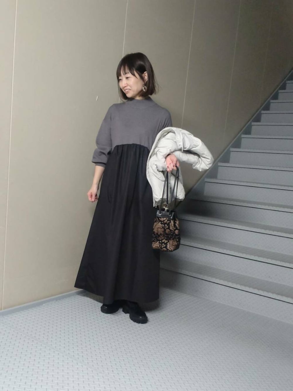 ニット部分はそこまで厚手ではないので、幅広いアウターとコーディネートが楽しめそうです。
