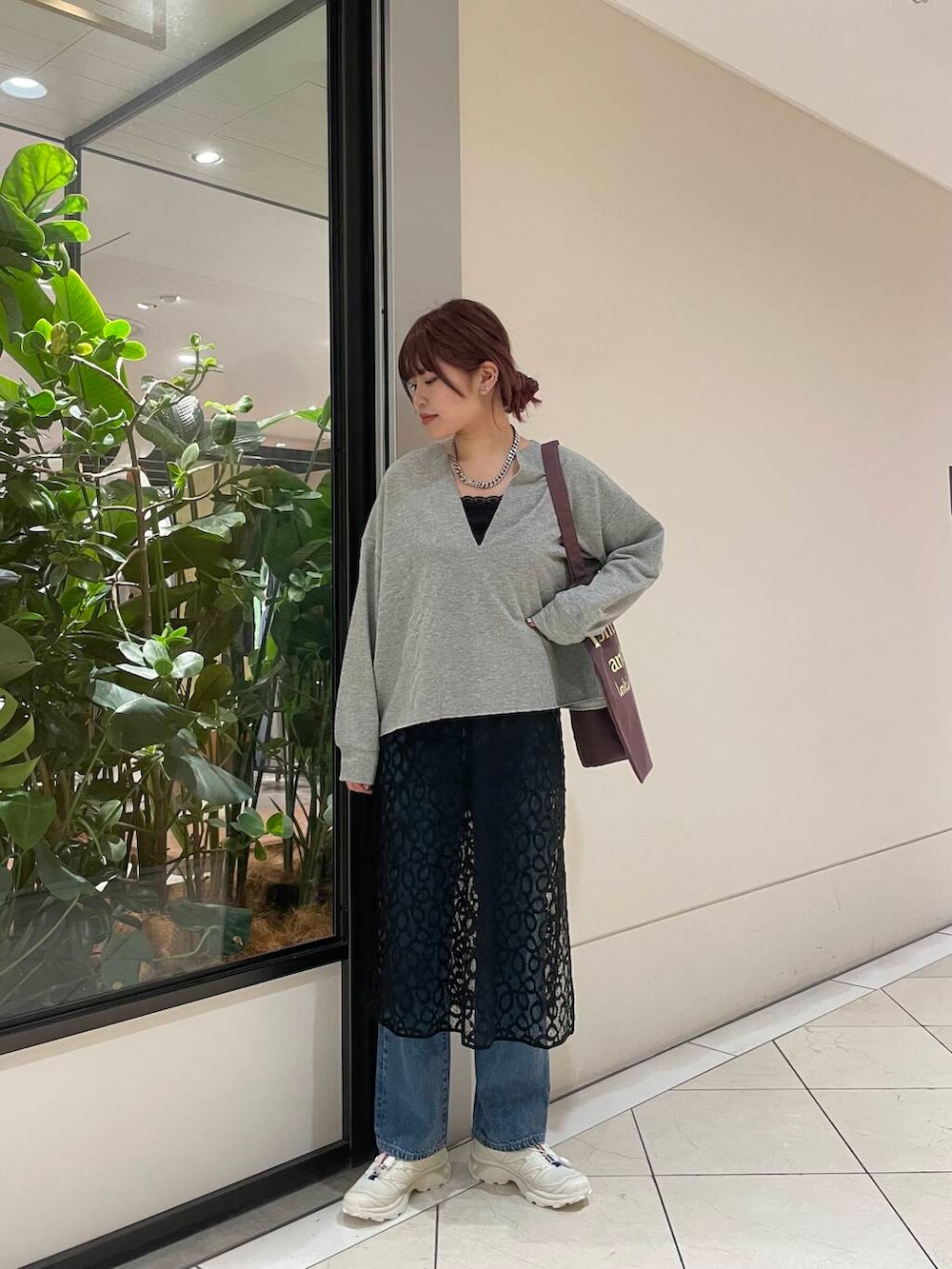 ROSSOのラメスウェットをメインに、レイヤードワンピースを中に仕込みました✌🏻