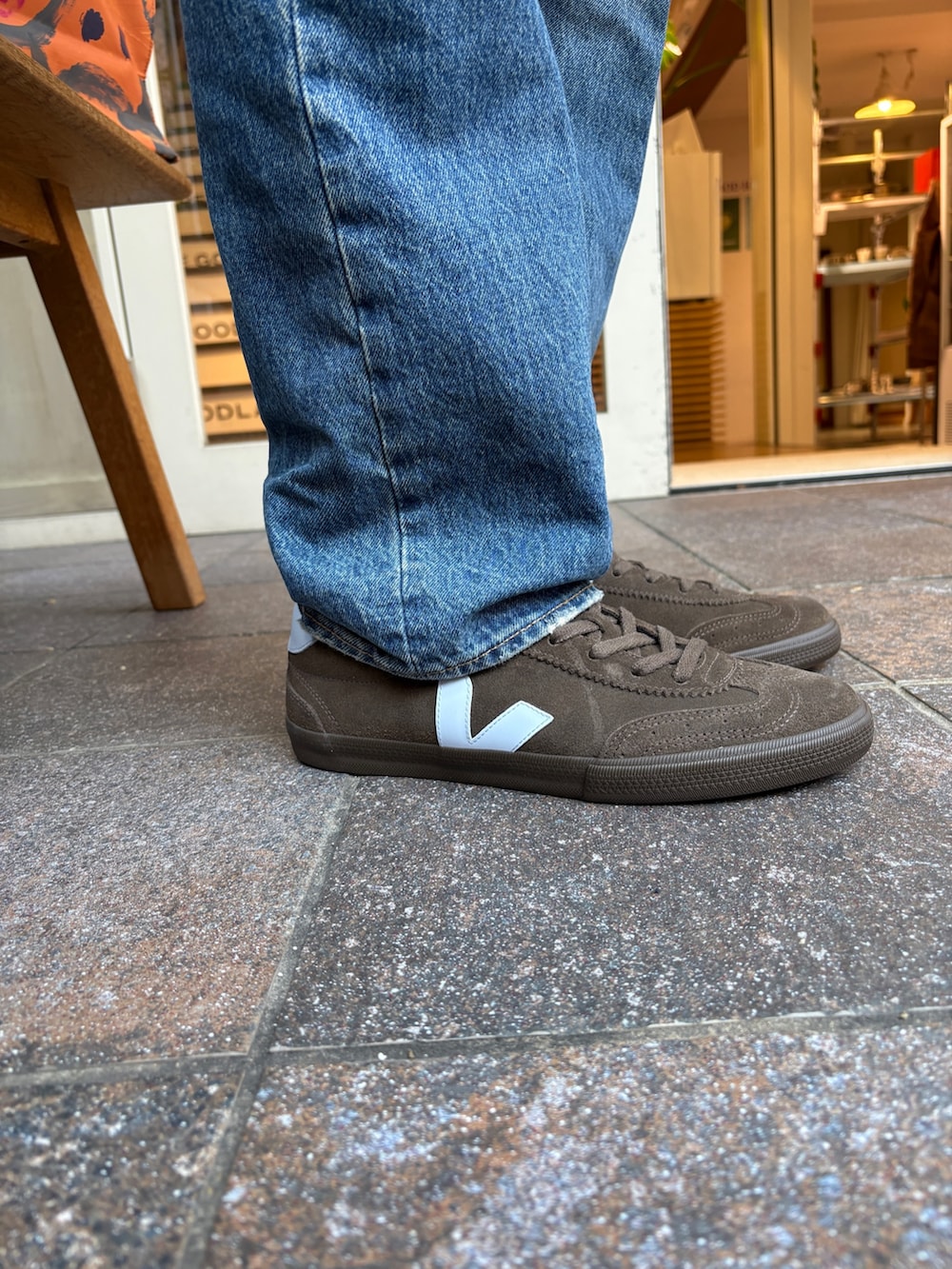 足元はVEJAでトップに出たボリュームをスッキリ。深いブラウンで落ち着いた雰囲気もプラス!
