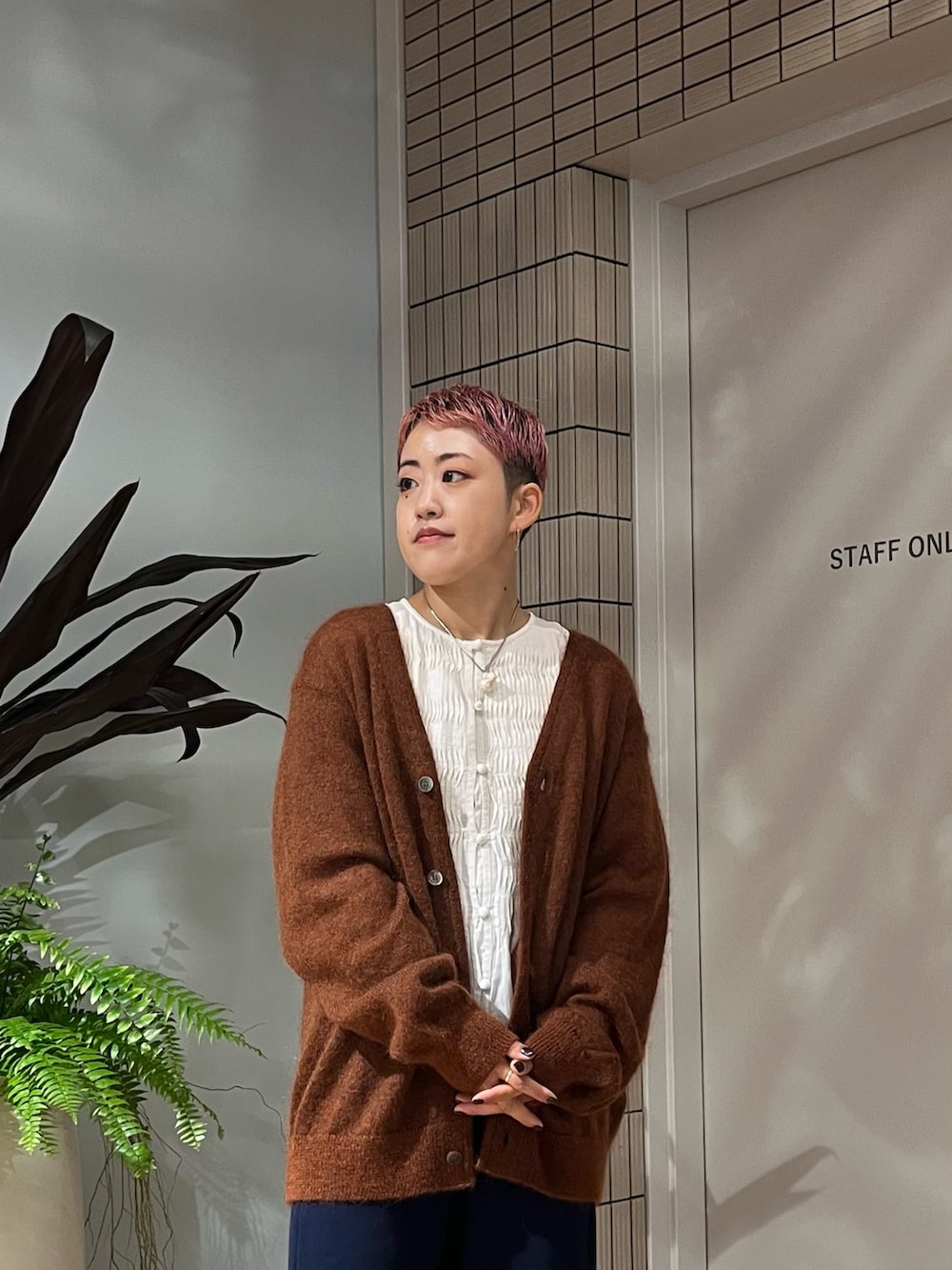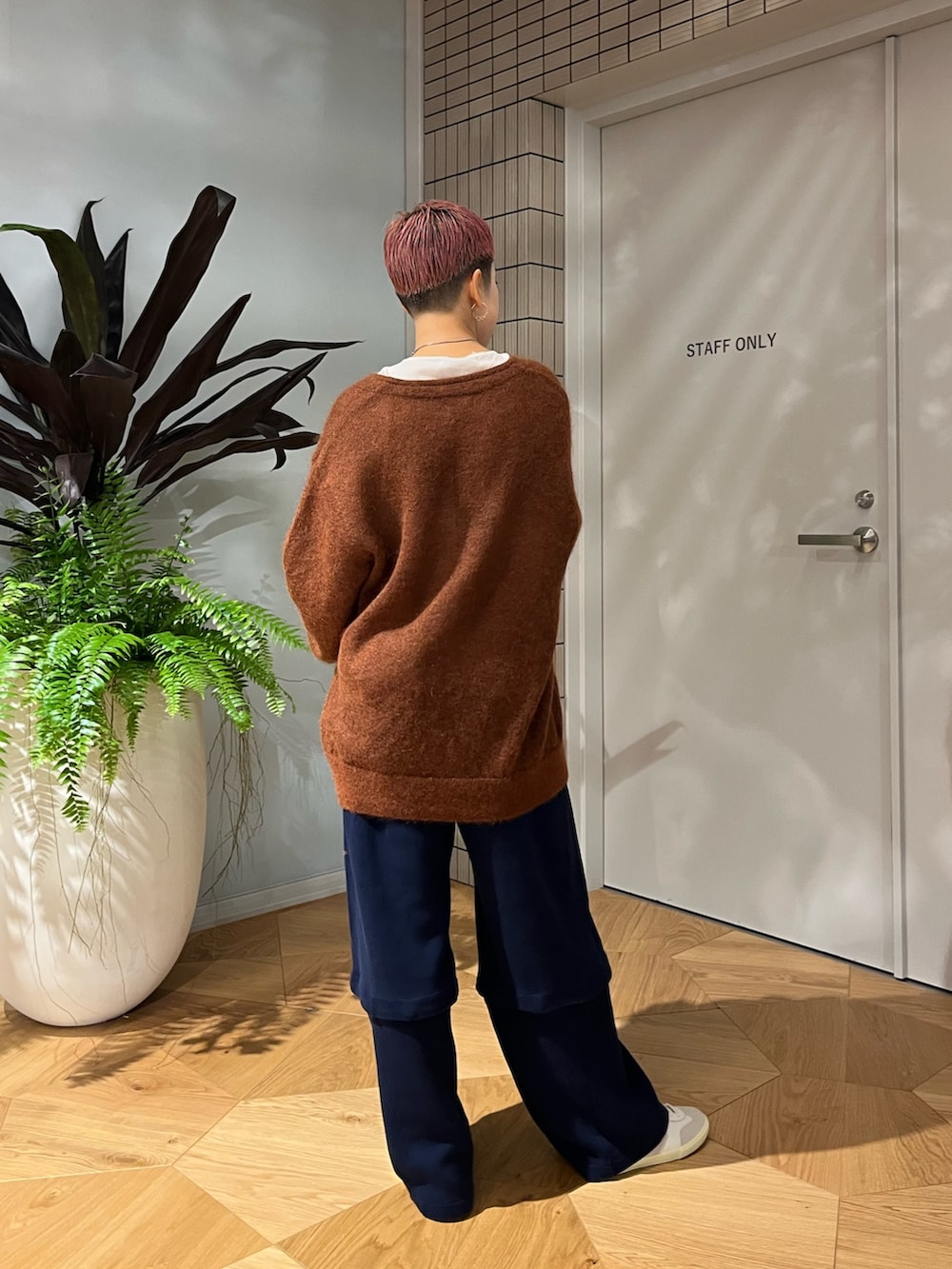 ネイビーのスウェットパンツを合わせて、そのゆったり感とモヘアにやわらかカーディガンが秋を演出してくれます🪐