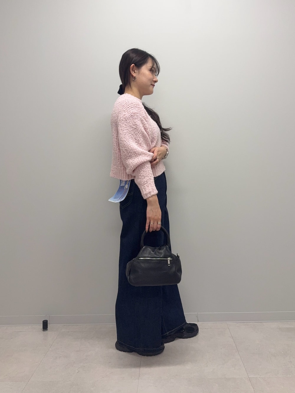 バギーパンツで合わせてもニットがコンパクトなのですっきりします!ハイウエストボトムや、ボリューム感のあるスカート合わせでも可愛いです!