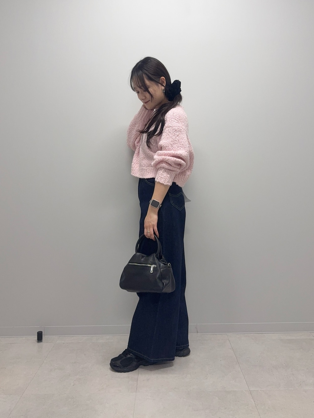 シューズやバッグをブラックにすることでピンクニットが甘すぎる事なくポイントになります✨