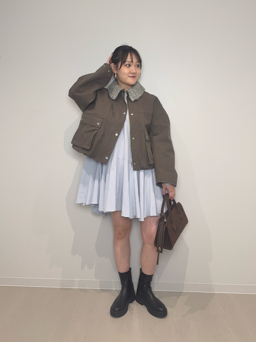 全体的にブラウンでまとめてポイントでワンピはライトブルーの色でアクセントに使いました◎