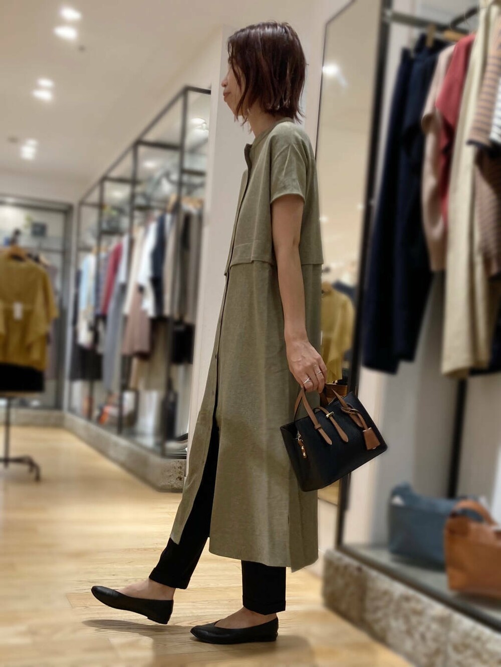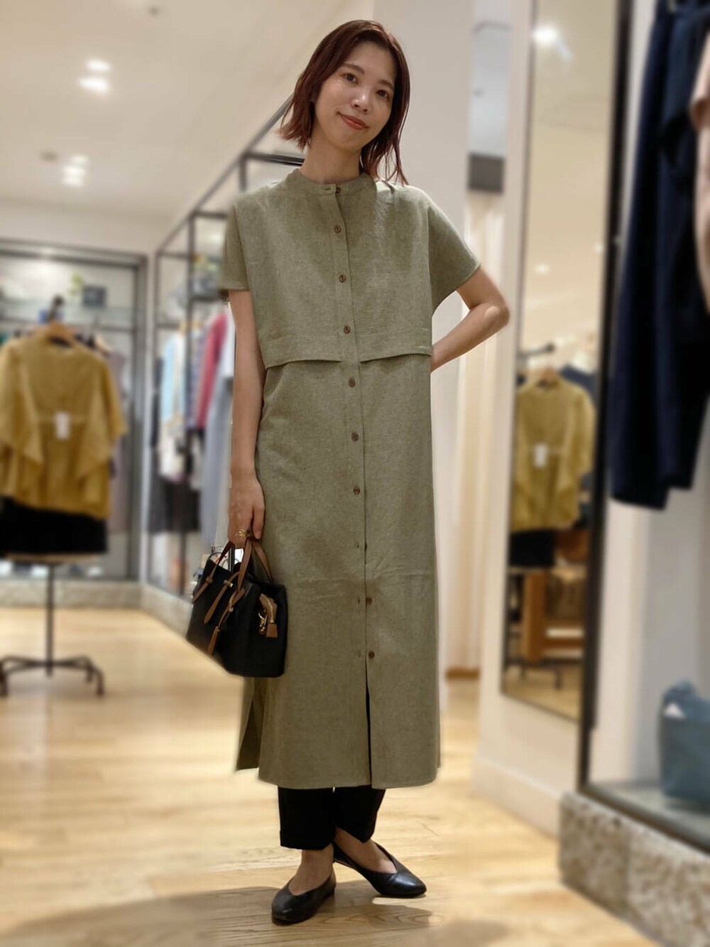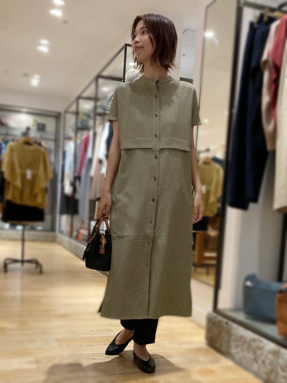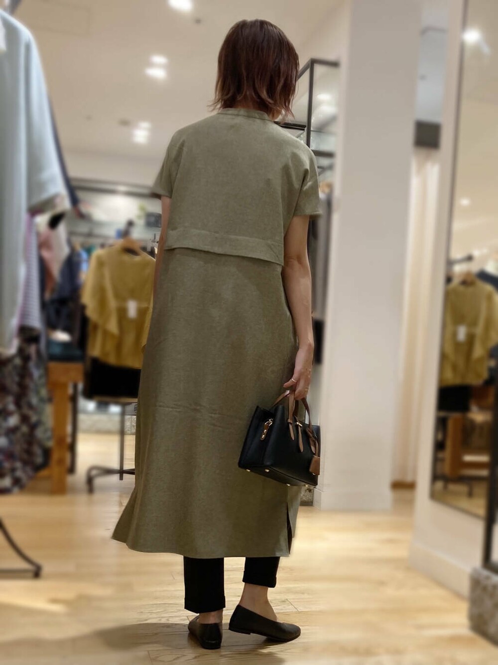 素材感・着心地:ややハリ感がありながらもストンと綺麗なIラインが作れるワンピース。腰周りやお腹周りを自然にカバーしてくれるのでぽっこりお腹に悩んでいる私にはとてもありがたいシルエットです…!