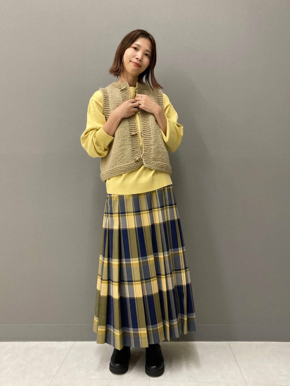 私は着るだけで元気になれるイエローをチョイス。これからの季節は重ね着を楽しみたいです。シアータートルやニットベスト。シャツを合わせても可愛いですね(^^)ピリング防止機能も付いているのでイージーケア大好きな私にはかなり嬉しい機能的なアイテム!