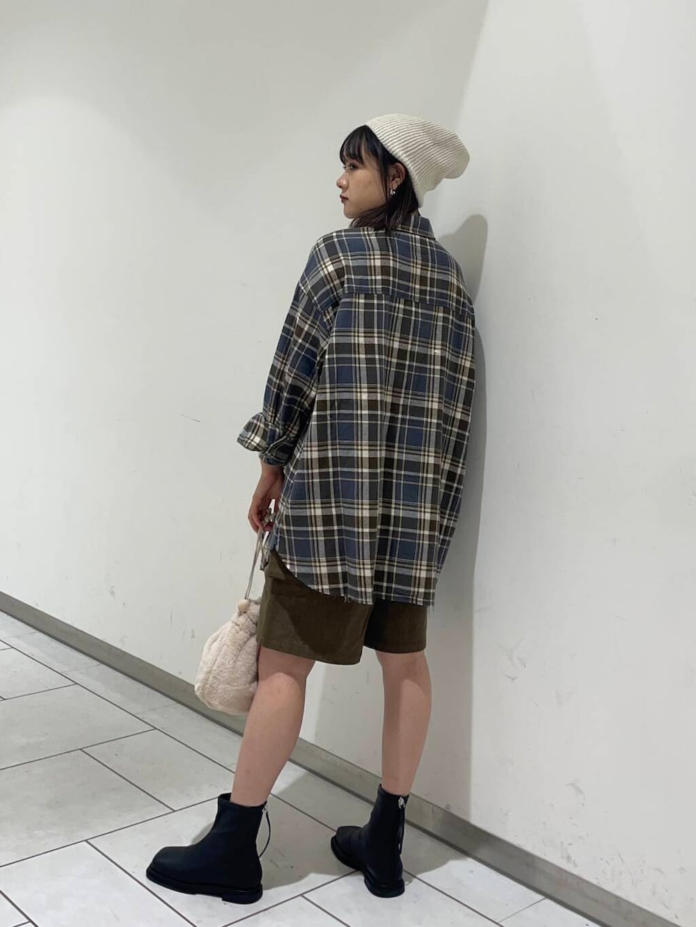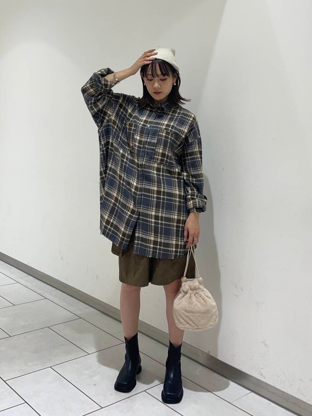 オーバーサイズのチェックシャツにショートパンツを合わせました!