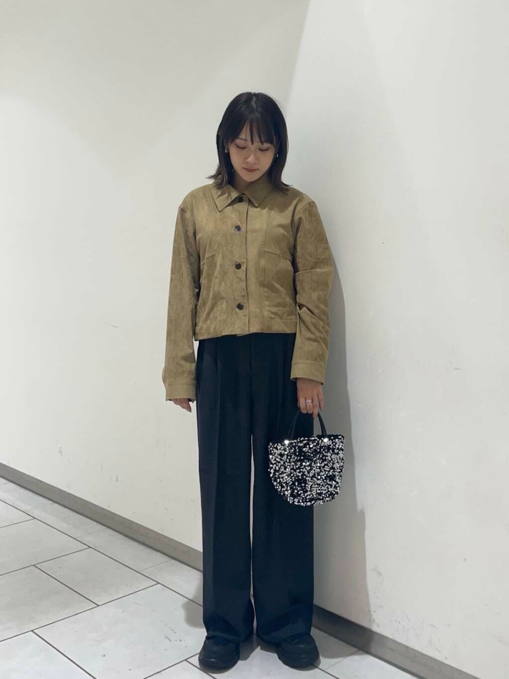 タックの入ったスラックスも楽な履き心地で、美脚効果抜群です!