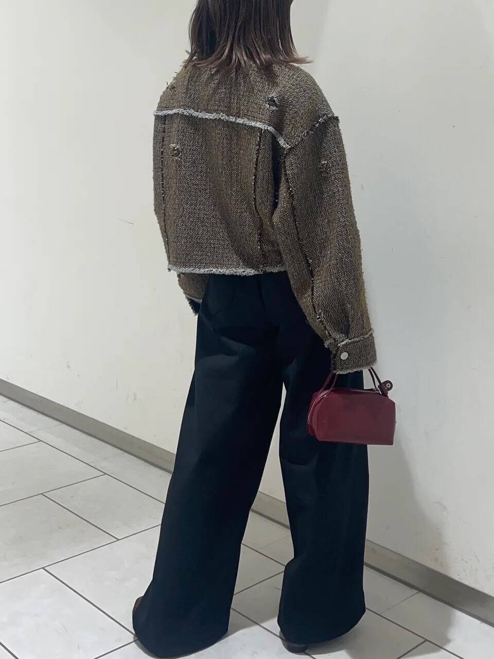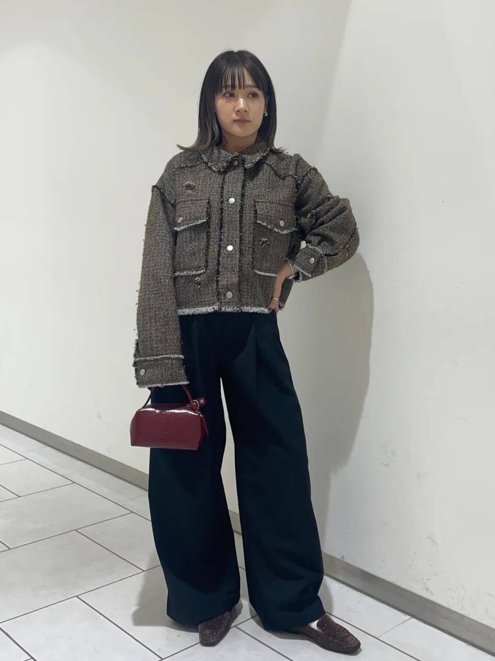 ツイードジャケットはクロップド丈なので自然にスタイルアップして見えます✨