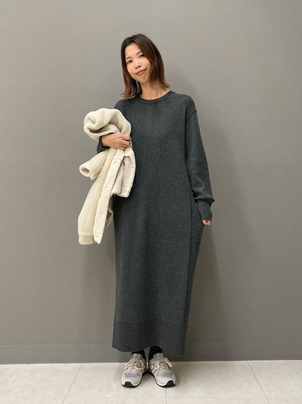 滑らかなニット素材のワンピース!ゆったりしたフリーサイズなので着ていてとにかく楽で、コーディネートに困った時の救世主✨