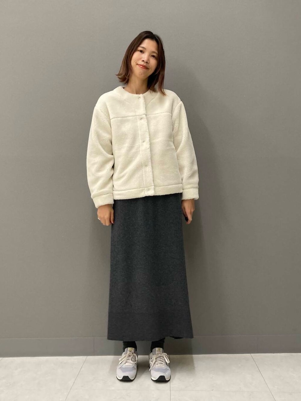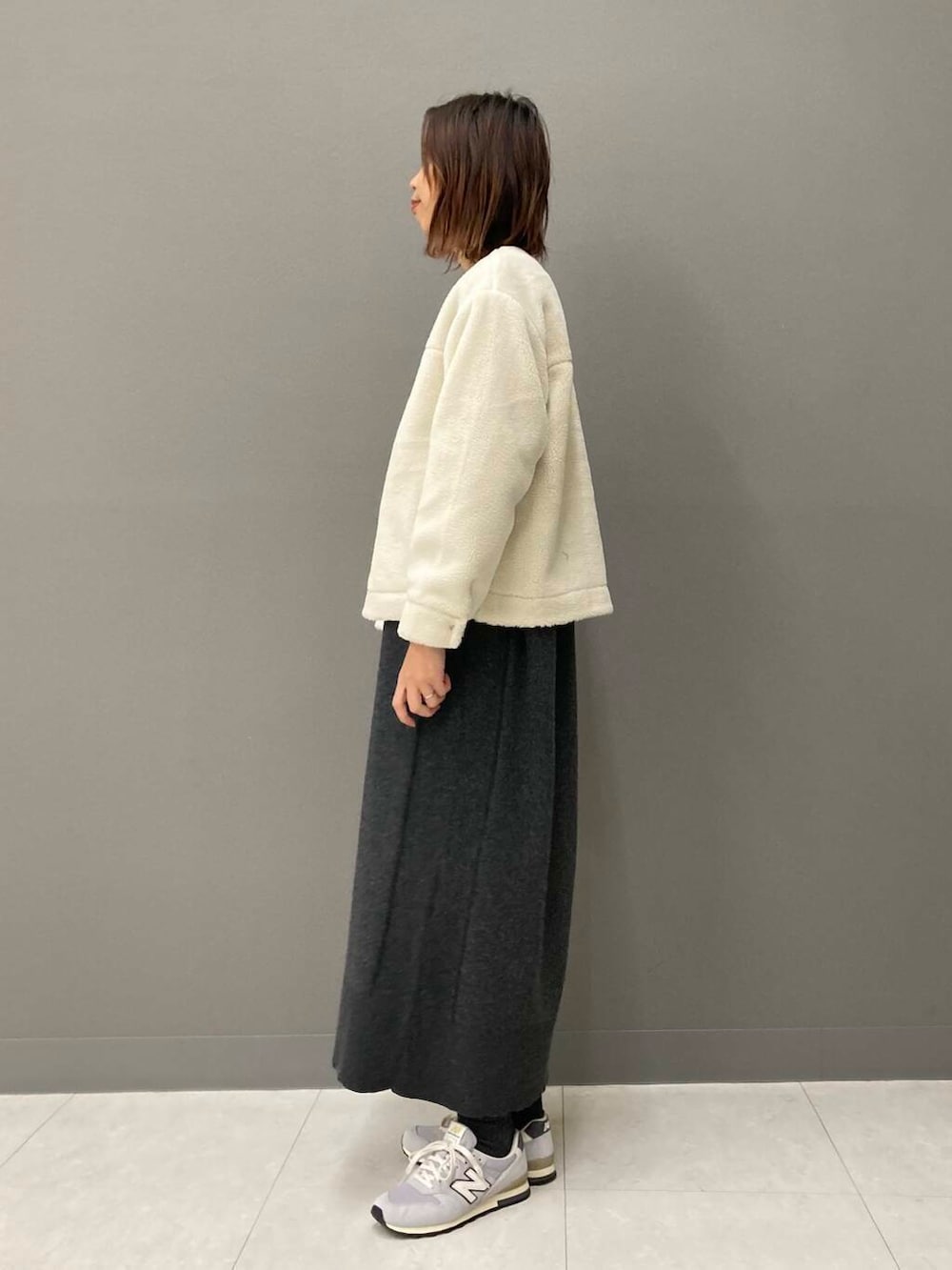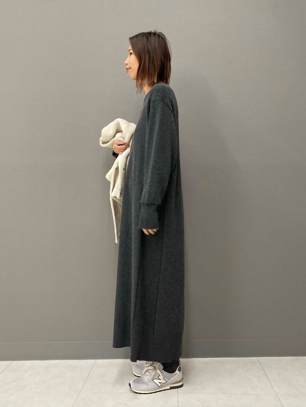 トレンド感のあるグレー系の色味は重くなりすぎず、ただしっかりスッキリと見せてくれるお色味なのでアウターにボリュームのある物も合わせていただきやすいです。