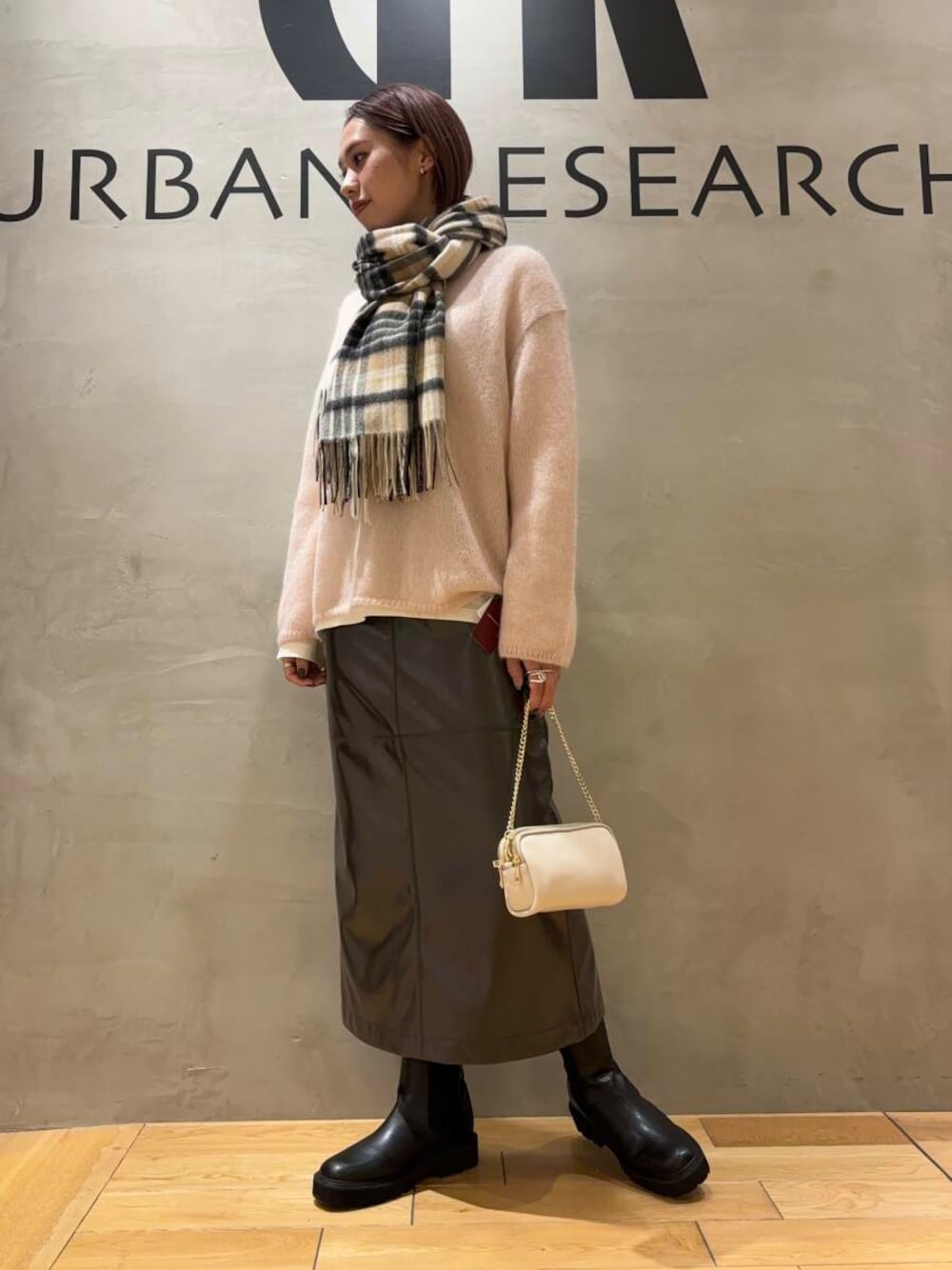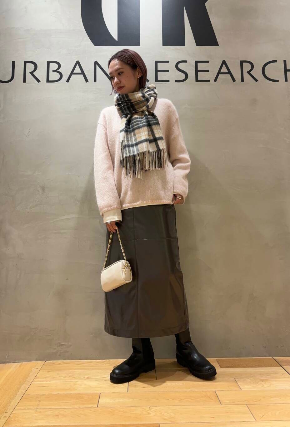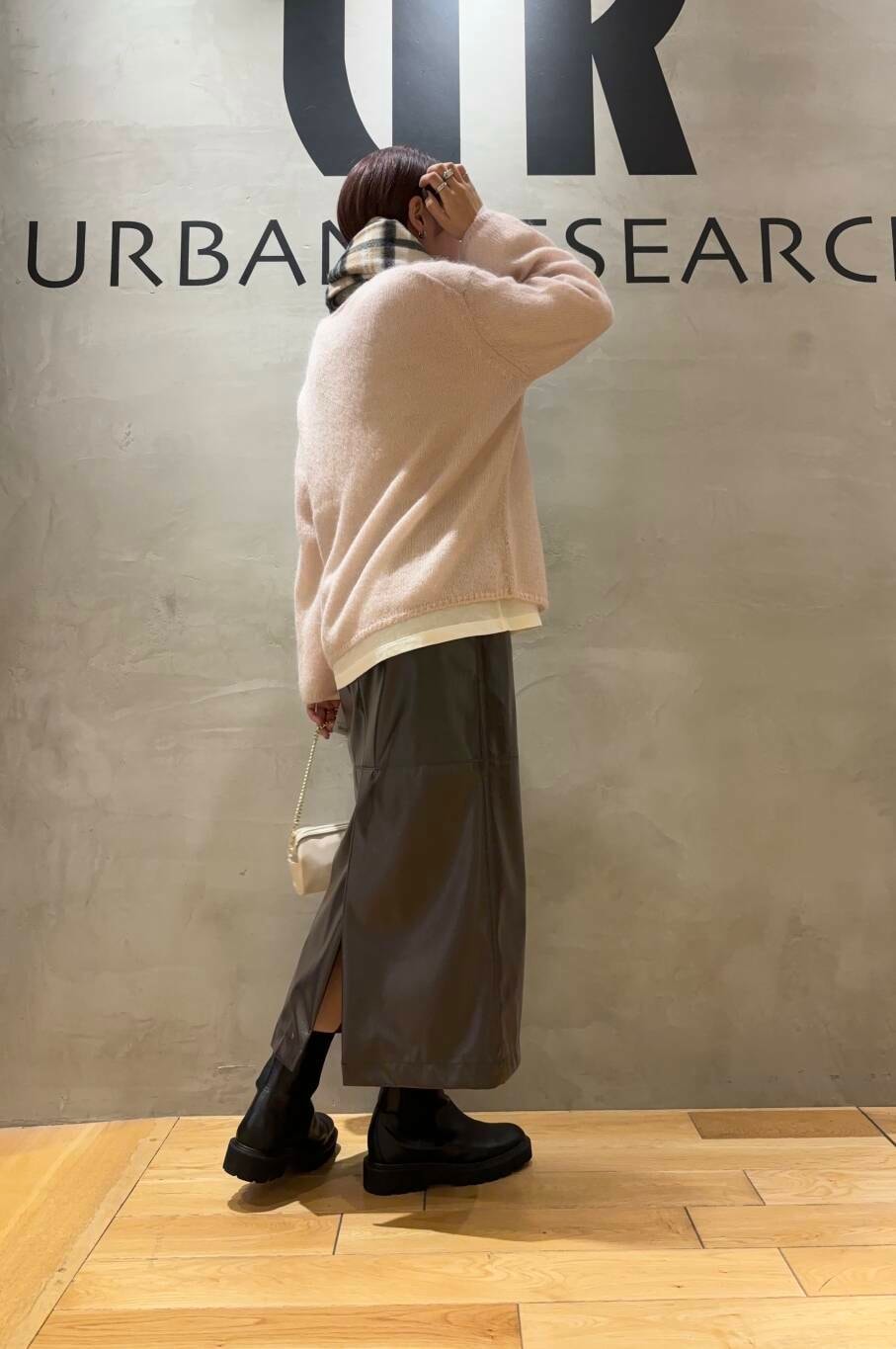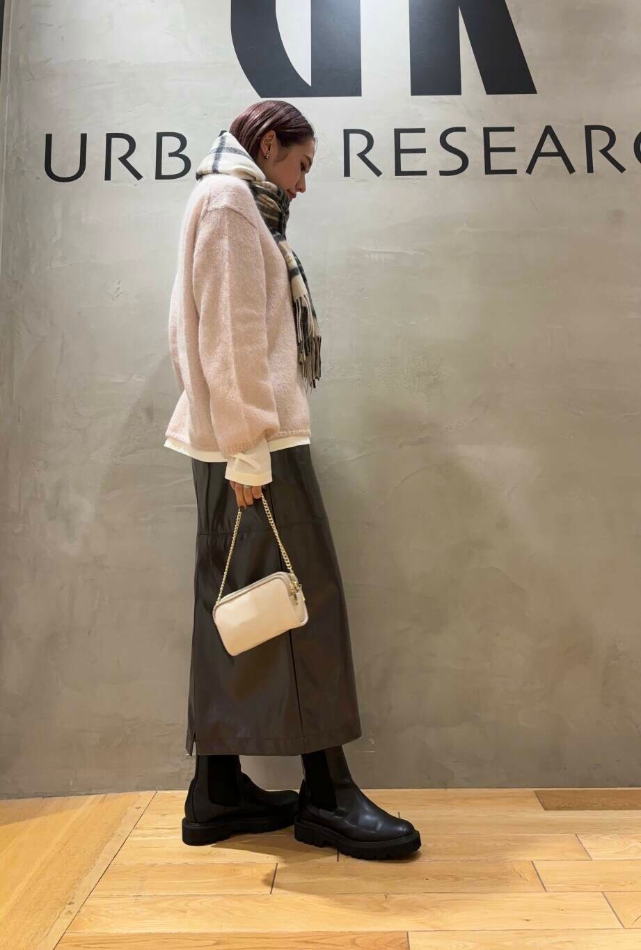 スカートはフェイクレザーでツヤ感のある
