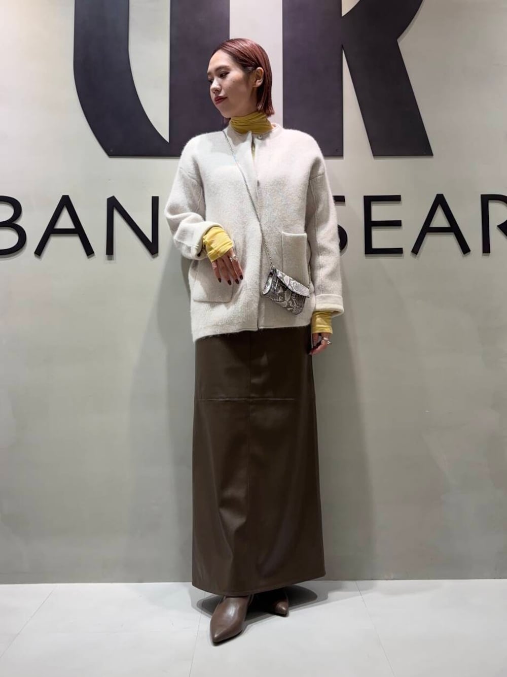 レザーライクなスカートで大人っぽくを意識し