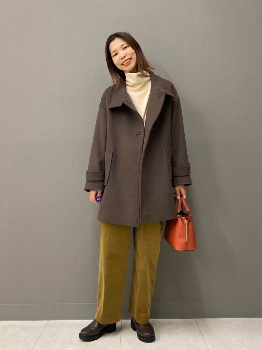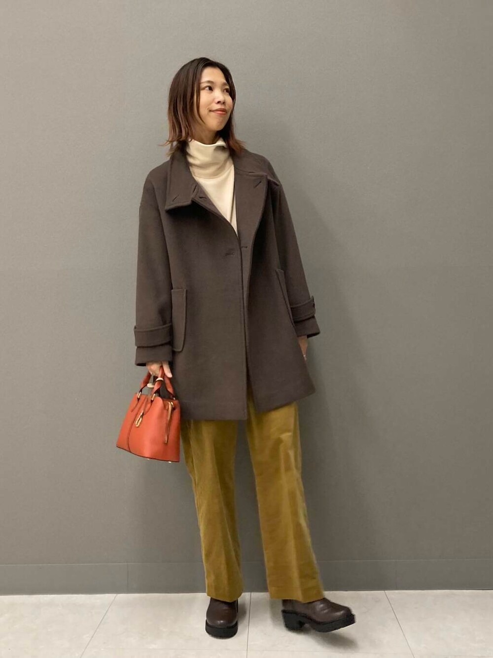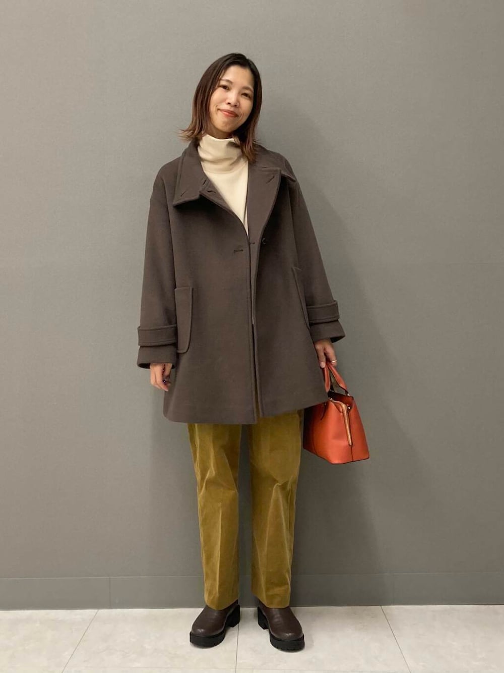 優しいブラウンの色味が可愛いウールスタンドカラーコート☕
