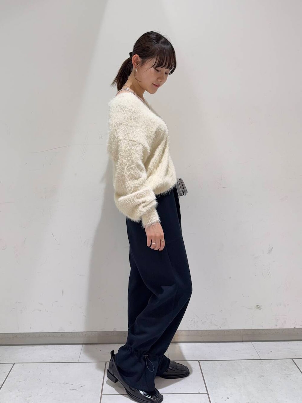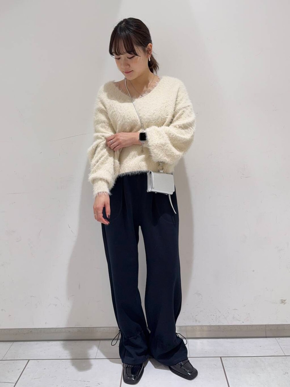 ニットはVネックでスッキリ着れて、着膨れしないので