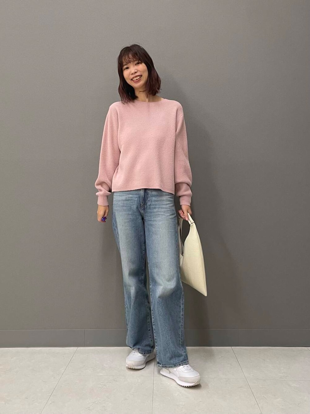 ソールが厚めのPUMAのフューチャーライダーを履くとややスッキリと軽めに。ぺたんこ靴を履くとフルレングスで履けて可愛くもカッコよくも履きこなせるのでかなり重宝しそうな予感…!
