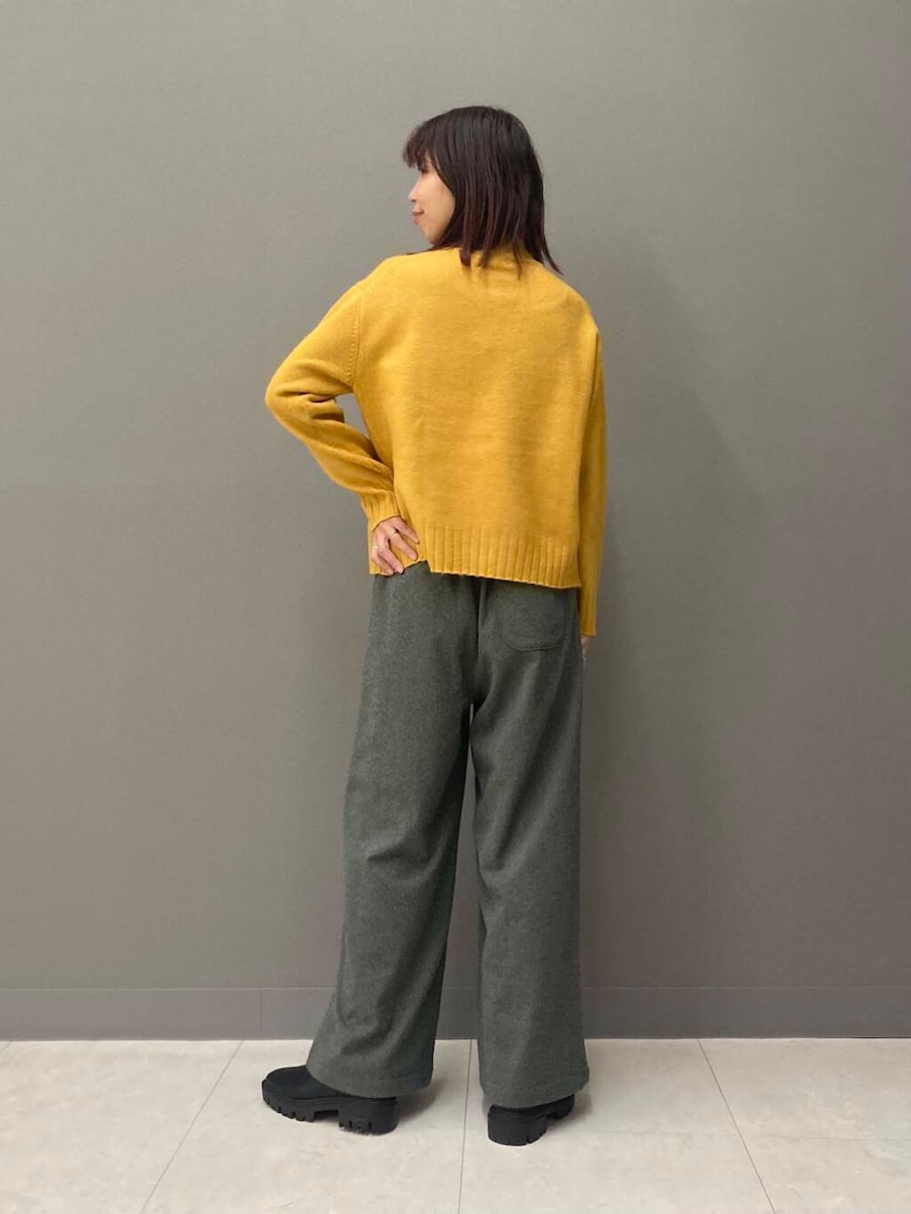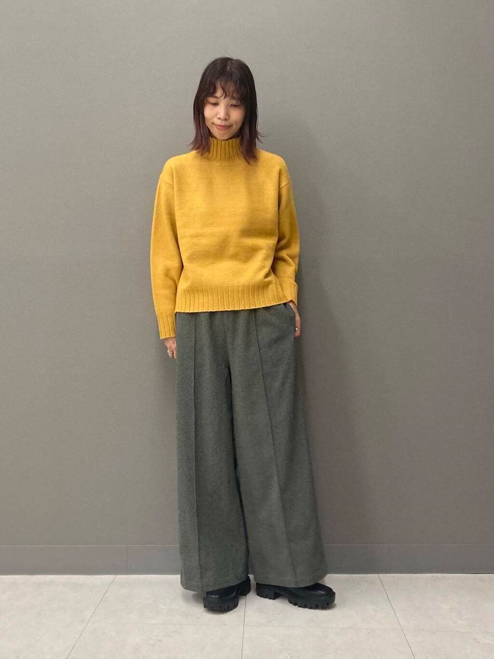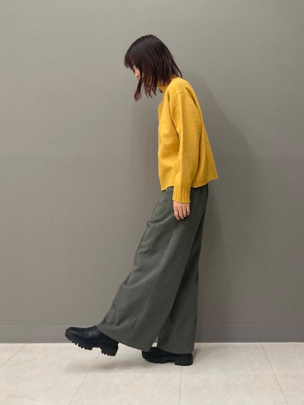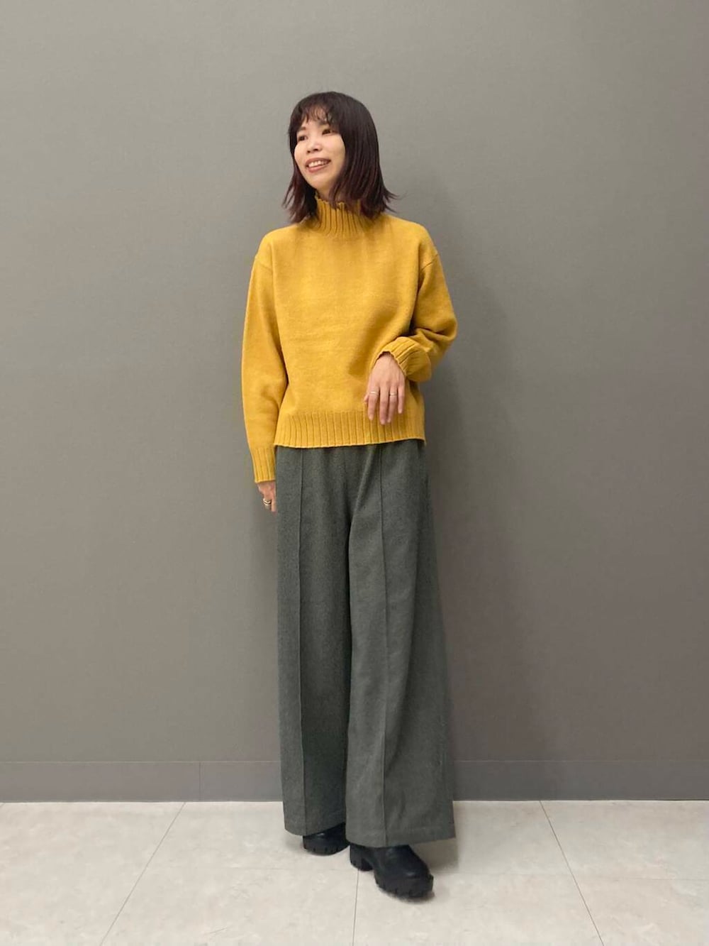 合わせたタートルネックニット(YELLOW)はイエベ秋大優勝カラー🟡高さのあるタートルネックは首元をしっかり暖めてくれるので、風の強い日や雨の日にもおすすめです!