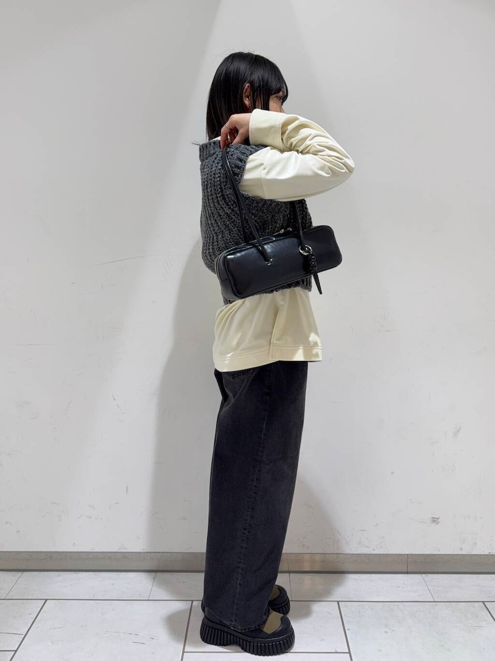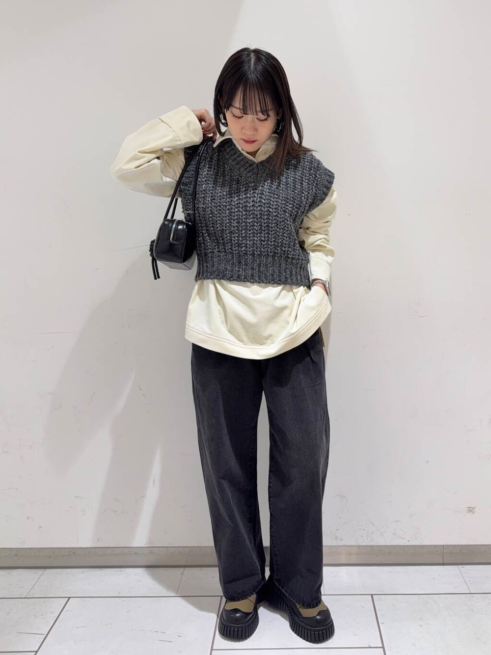 ニットベストはVネックになっているので顔周りをスッキリ見せてくれます!