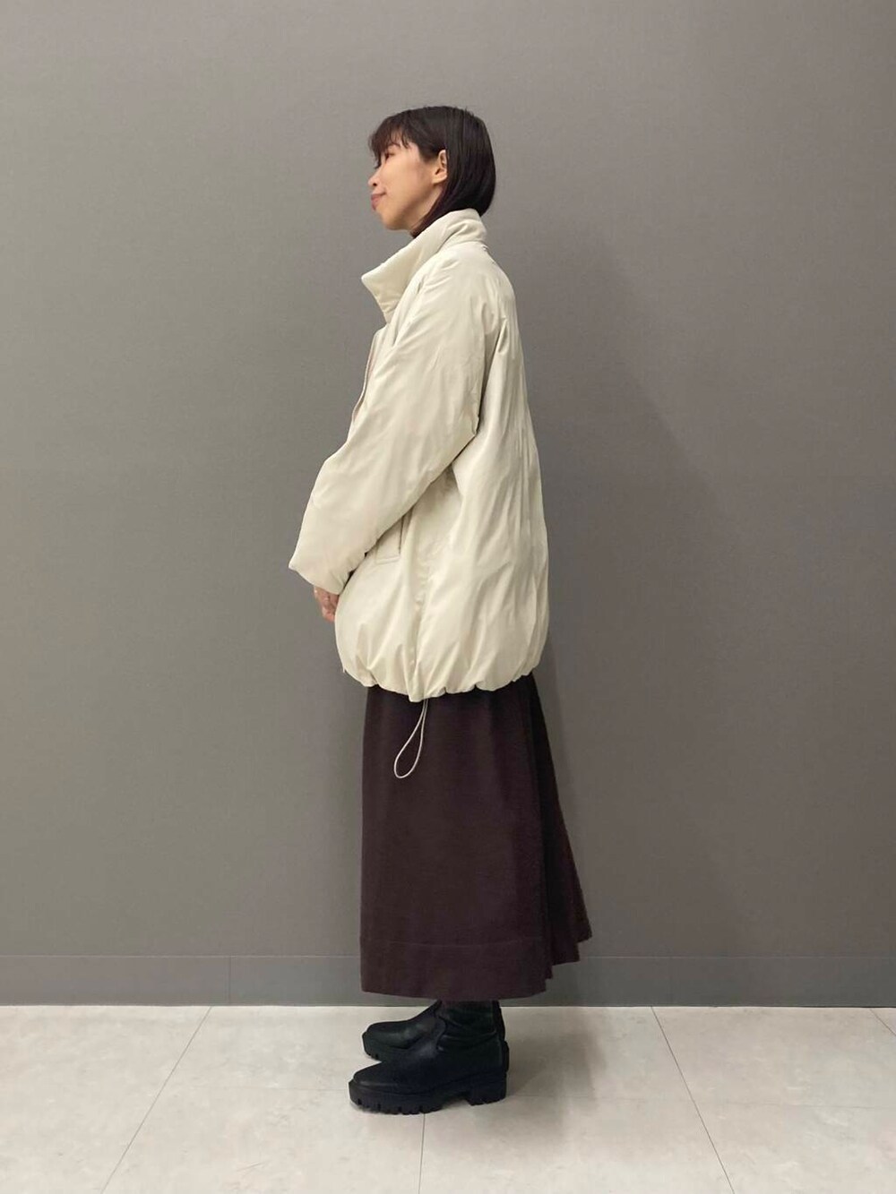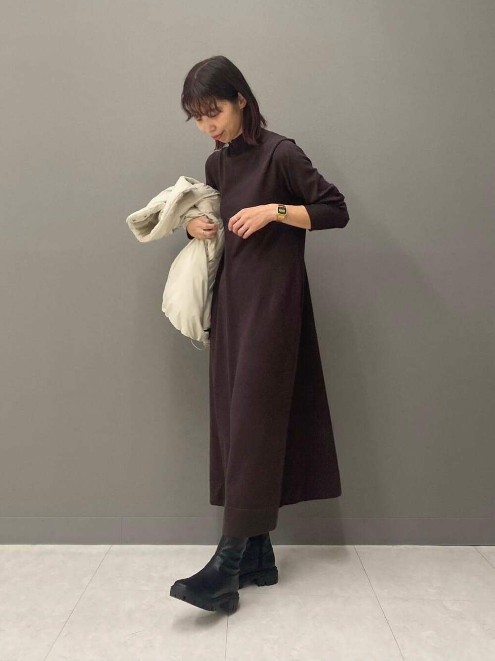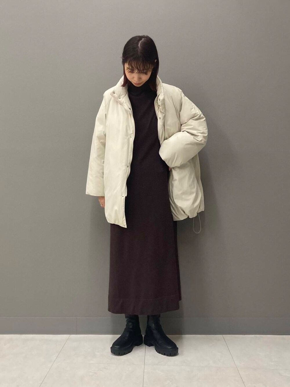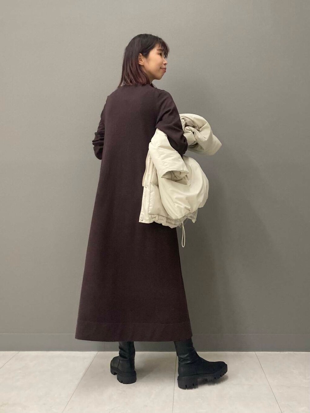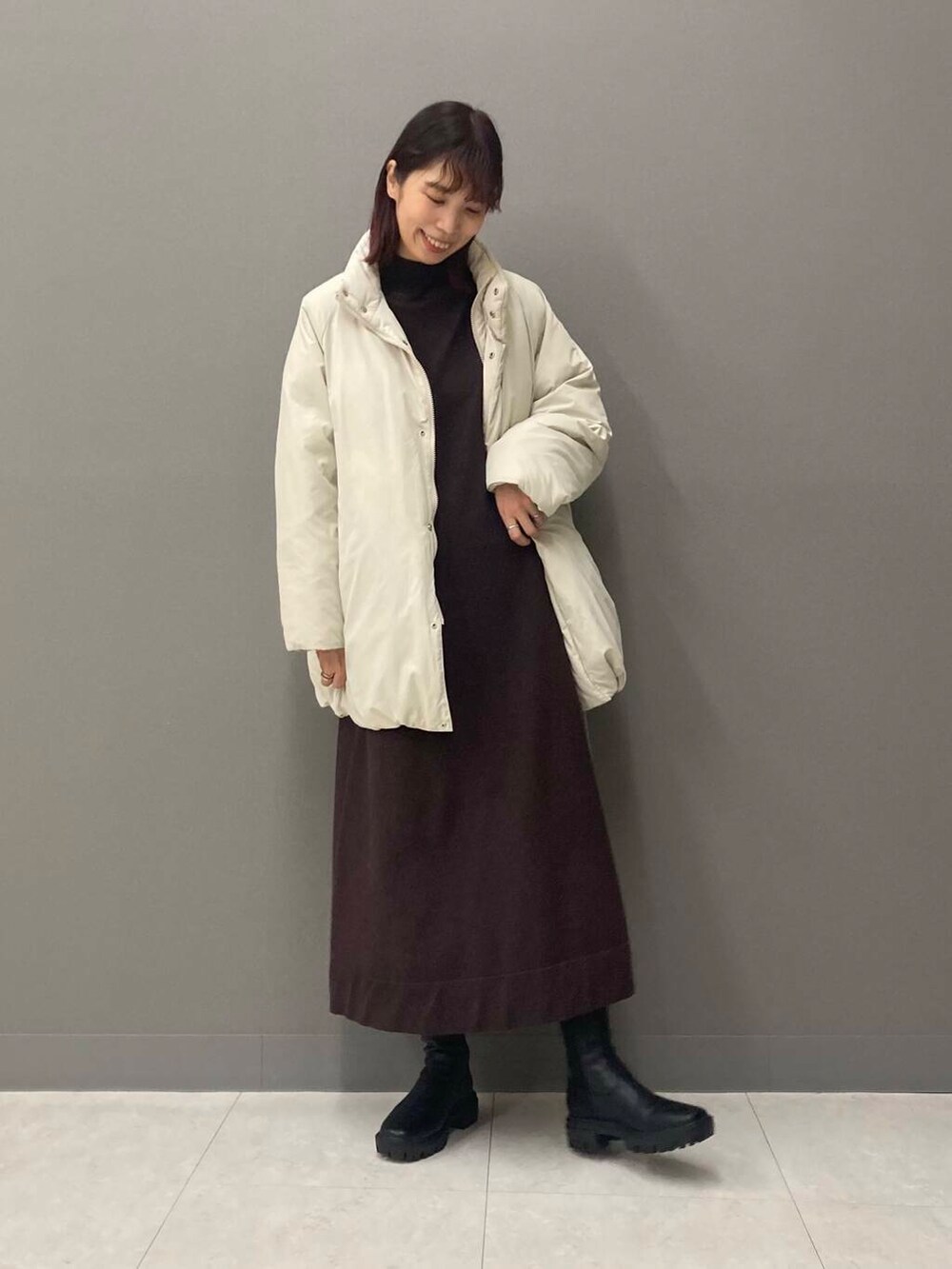 ブラウンってだけで可愛くて手に取りがちなのですが、しっかりチョコレート色なのが珍しいなぁと思い着てみたら着丈も長めで最高でした!