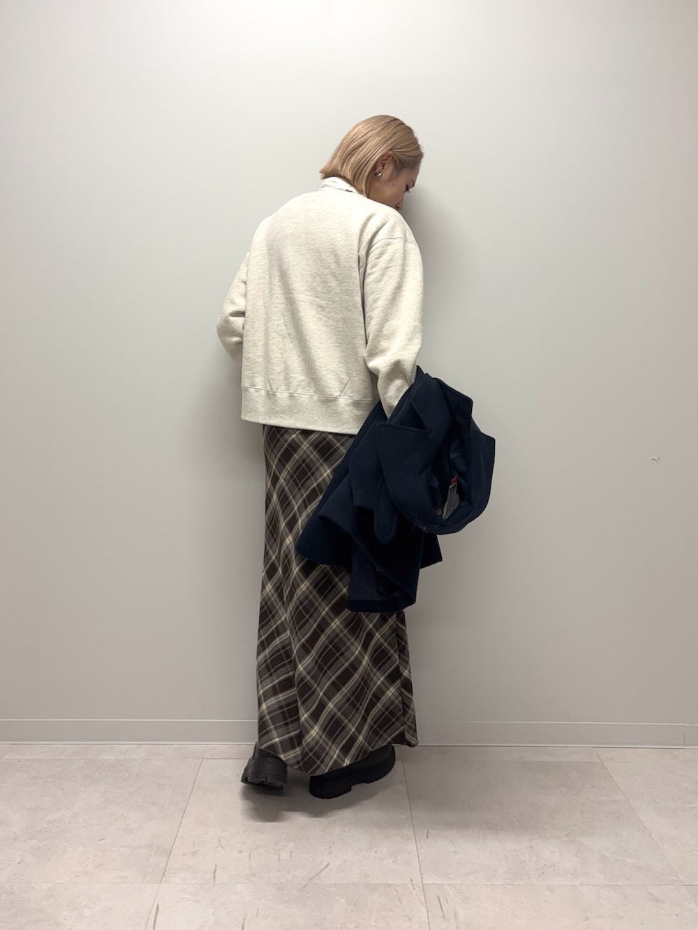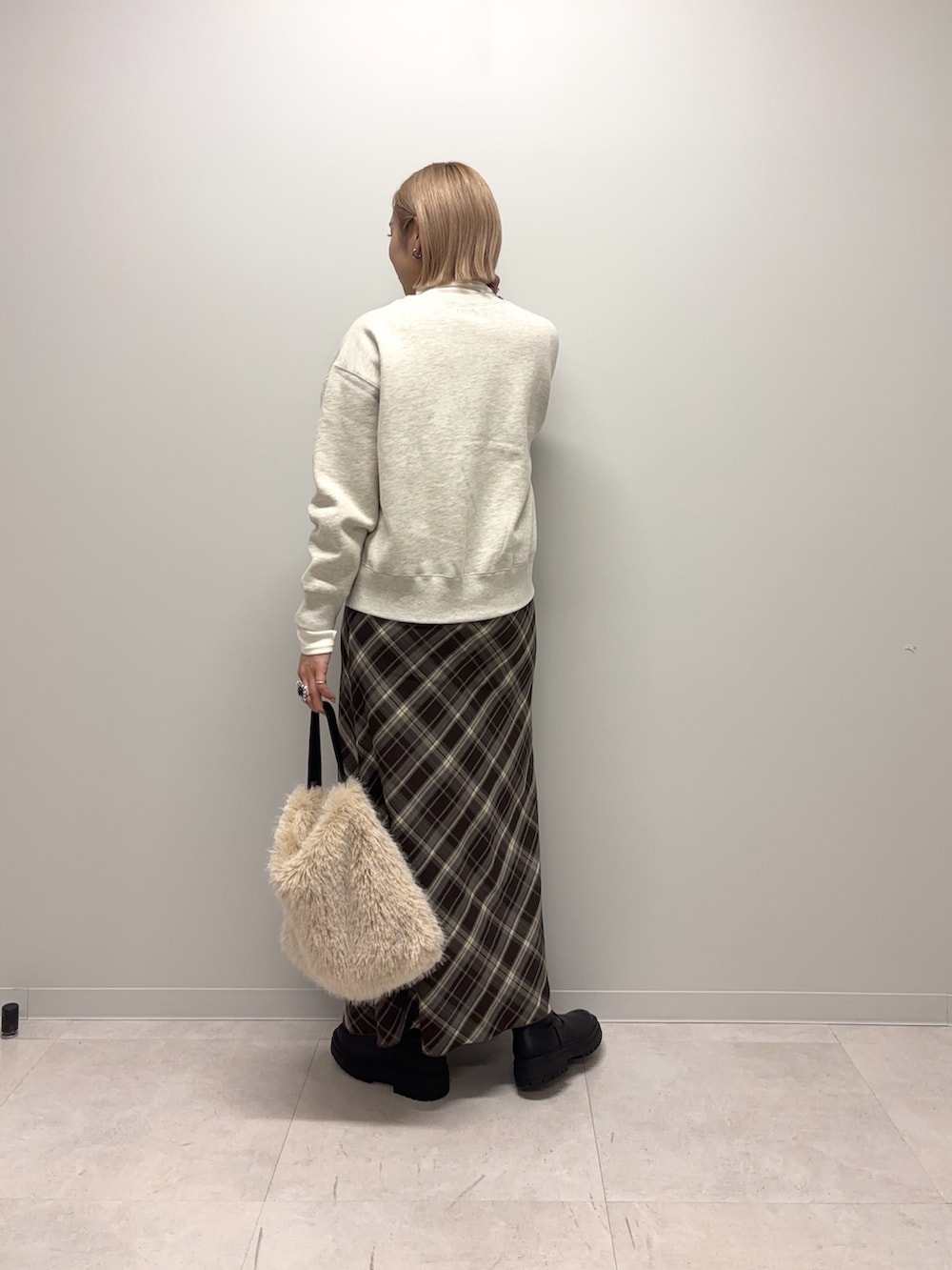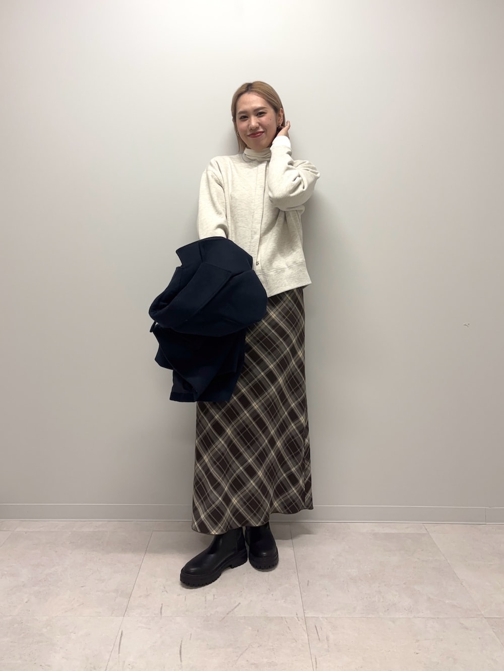 スカートはチェックスカートで取り入れるだけでコーディネートがグンとおしゃれになります♪腰回りが張っている私もシルエットを拾い過ぎずすっきり着用できます!◎