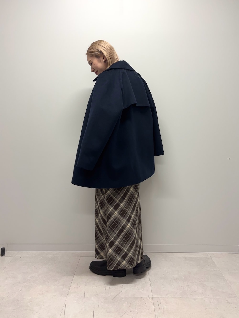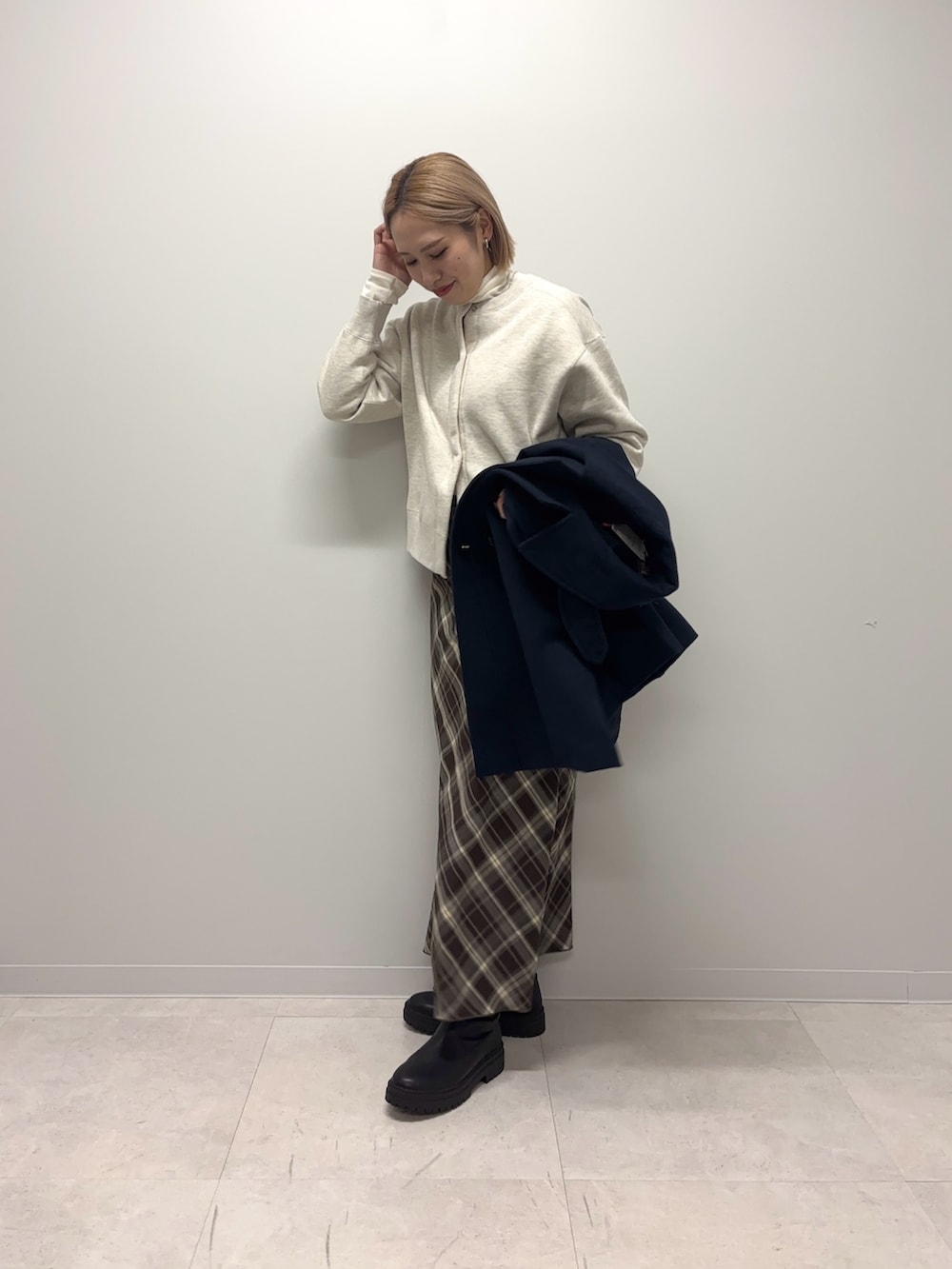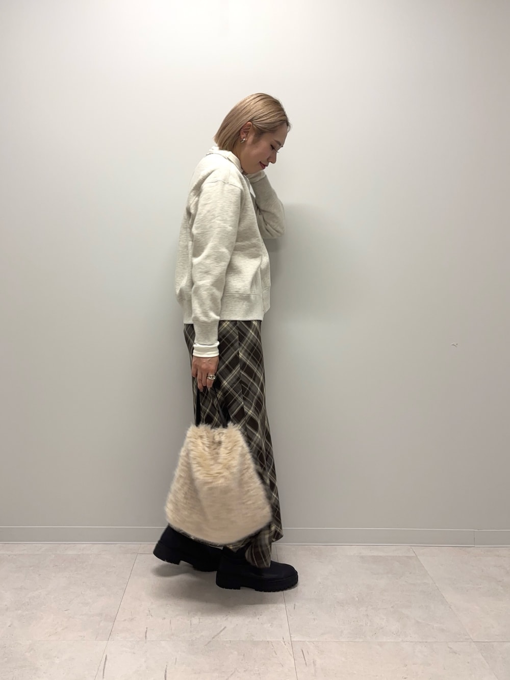 スカートはチェックスカートで取り入れるだけでコーディネートがグンとおしゃれになります♪腰回りが張っている私もシルエットを拾い過ぎずすっきり着用できます!◎