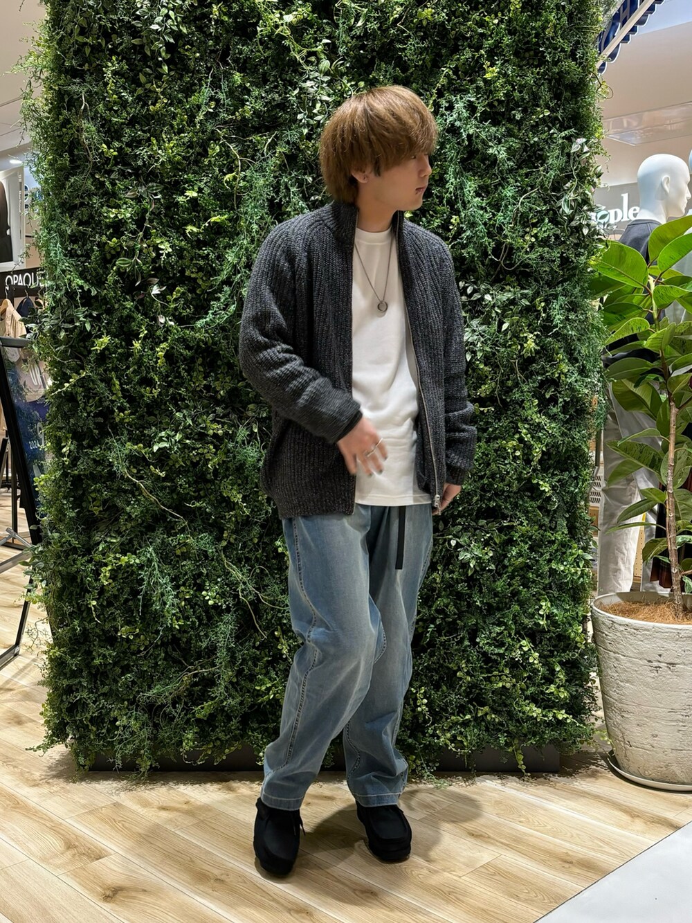 GRAMICCIのワイドパンツにドライバーズニットで年齢問わず着れるスタイリングに!