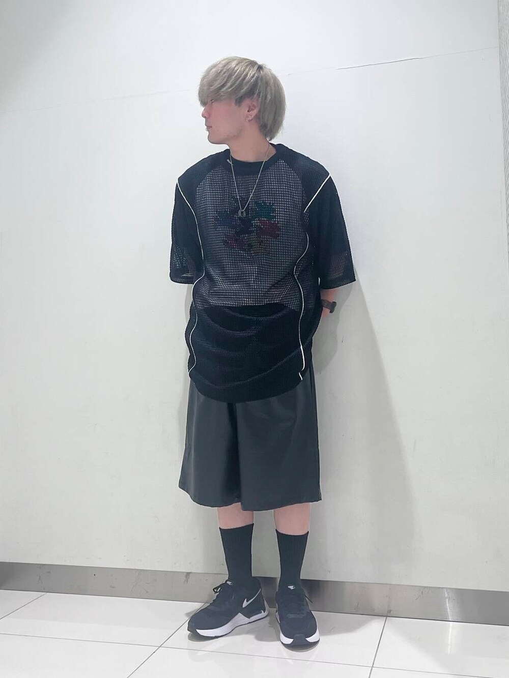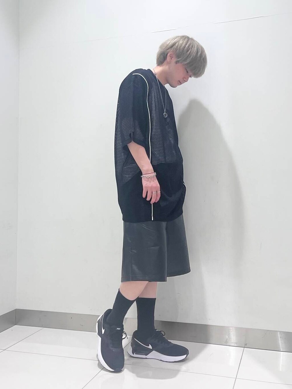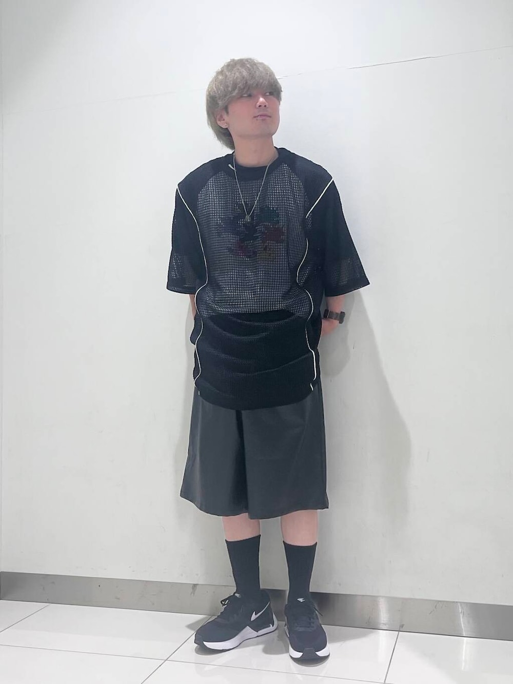 ラインメッシュレイヤードTとラグランTを合わせてモノトーンにスタイリング🎹