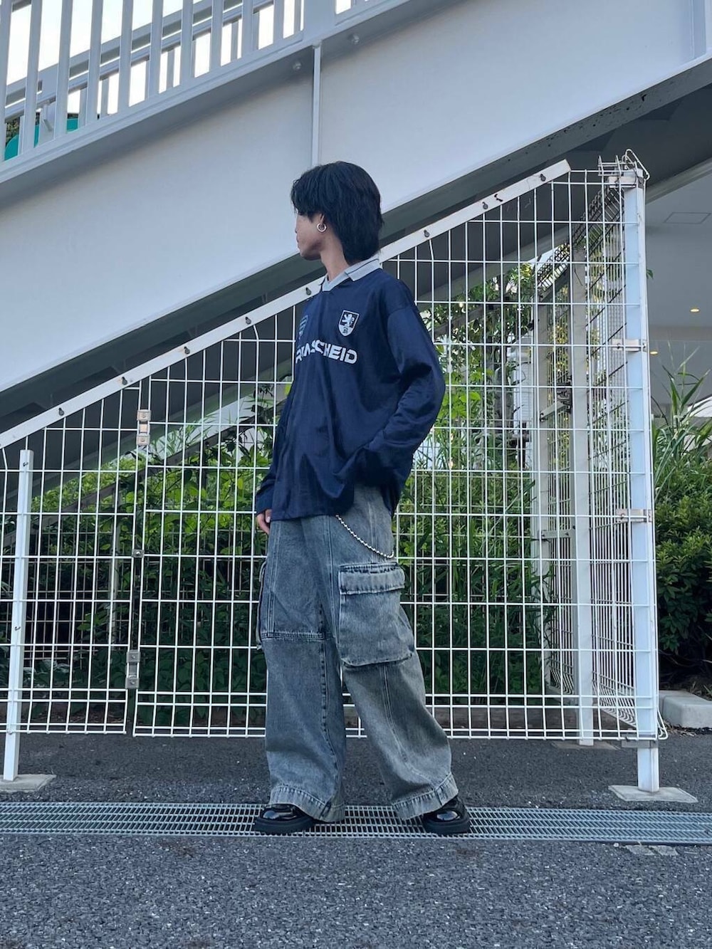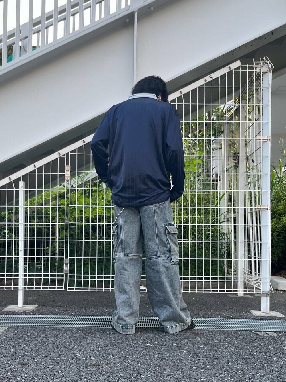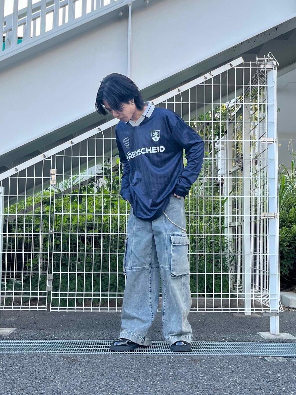 流行りのゲームシャツはオーバーすぎないサイズ感で、ジャケットのインナーにも使いやすいです◎