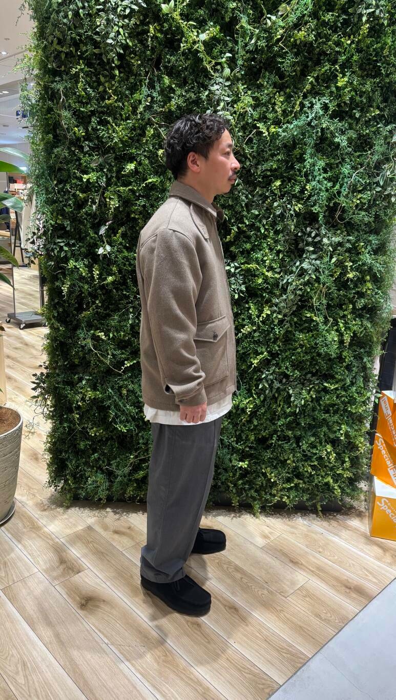 ウールのふくらみと温かみのあるメルトン生地を使用したハリントンジャケット。