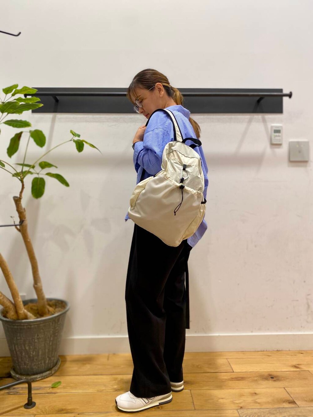 2タックのパンツは履き心地もよく、ほどよいワイドなシルエットでスニーカーはもちろん、パンプスなども合わせて頂けます。