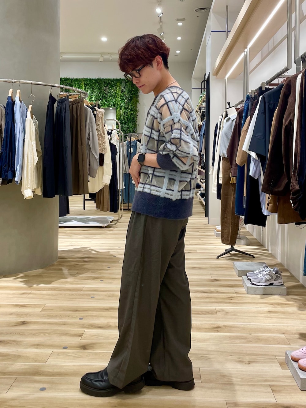 ニットは大胆なチェック柄が存在感を放ち、シアー系なのでまだ暑い時期でも快適に着用いただけます✨️