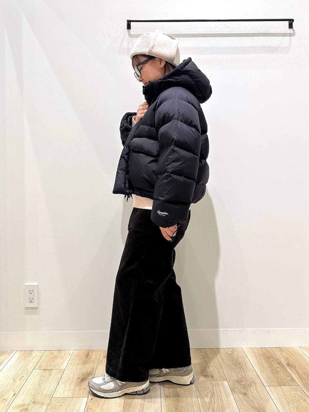 ジムフレックスのダウンは短丈でワイドパンツや