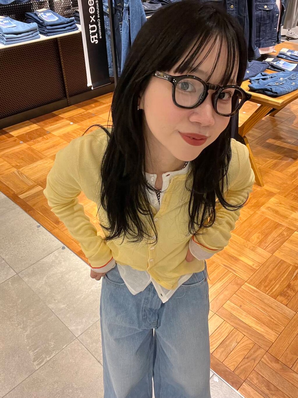 同じカーディガンを色違いで2枚重ねて着てみました🟡⚪️