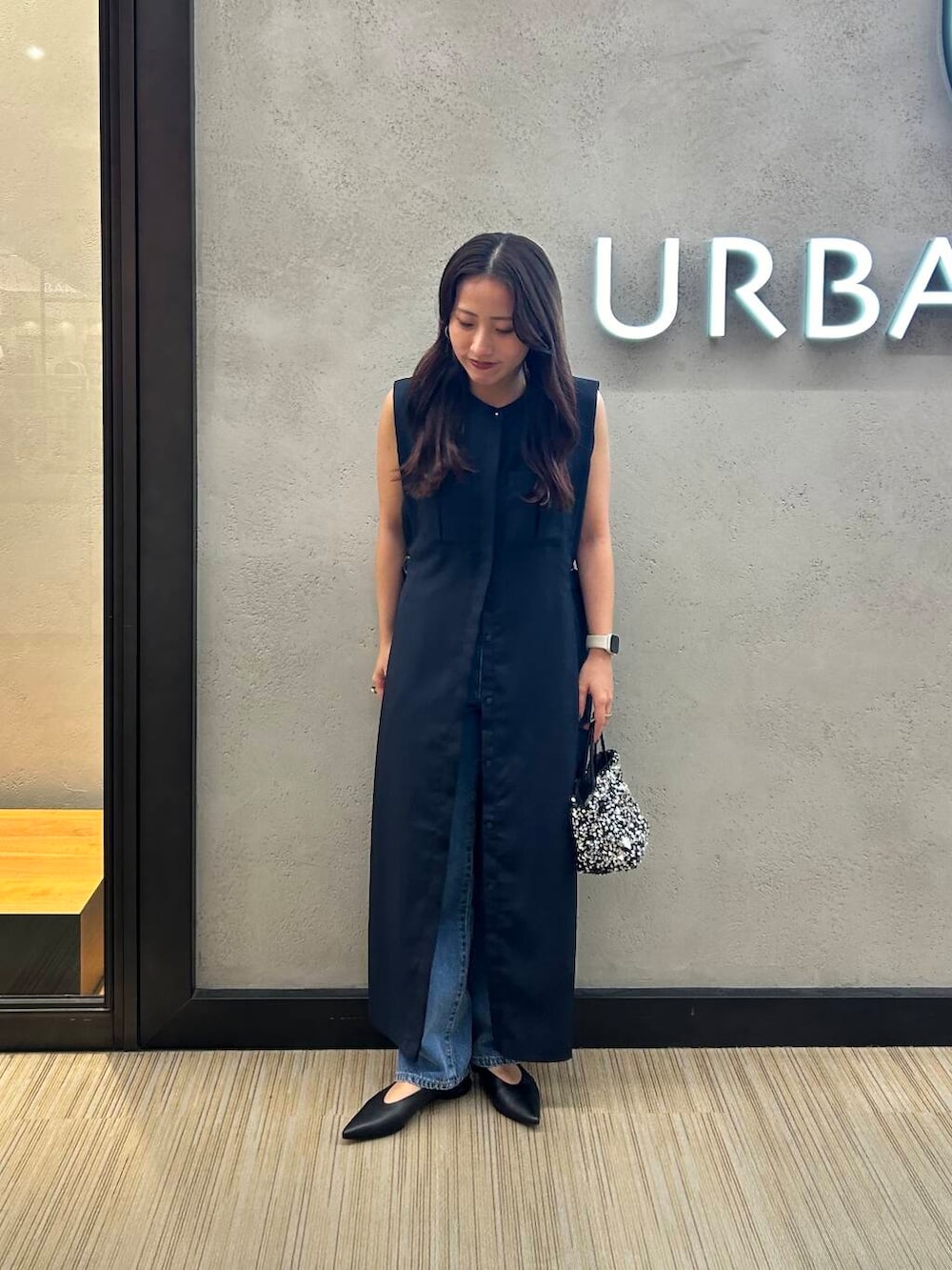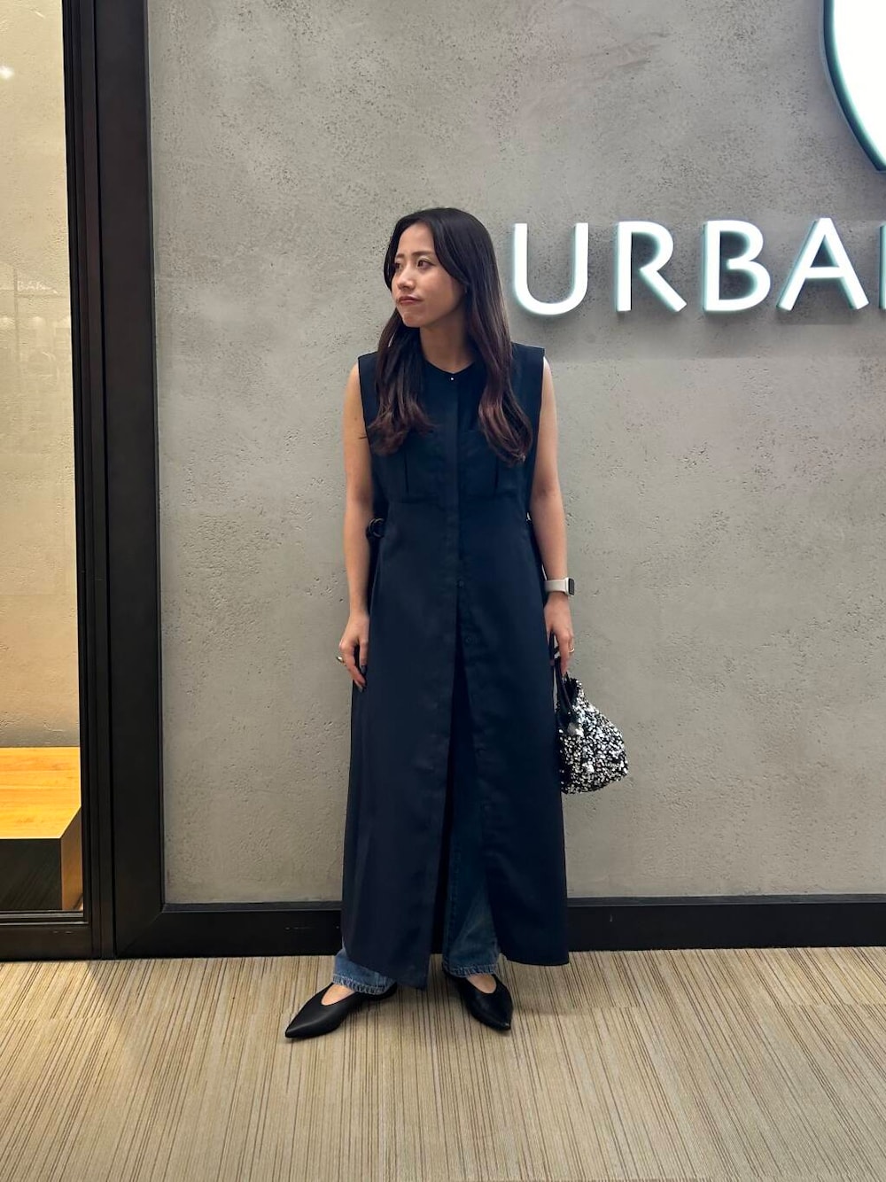 スッキリしたIラインシルエットは身長問わず大人っぽく着ていただけます◎途中からボタンを開けてチラッとデニムを見せることでキレイめになり過ぎないようにしています!