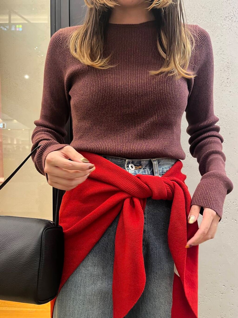 その上から、LAATOのカーディガンとセットのストールを腰巻きしてみました❤️