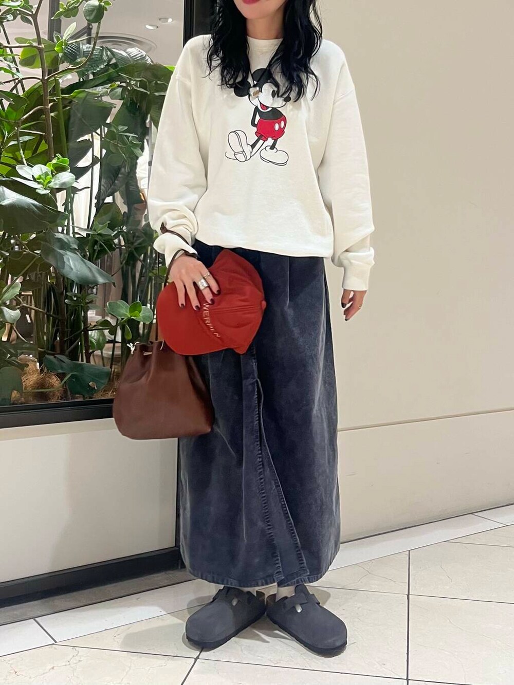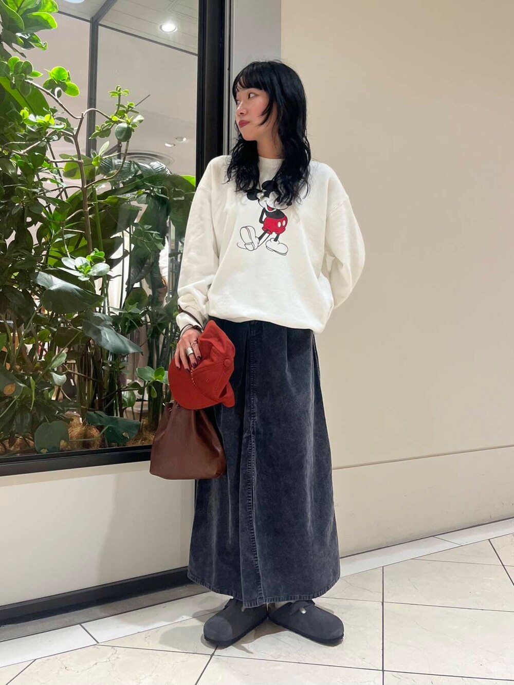 インしなくてもシルエットがきれいにおさまるので、ベーシックに幅広いアイテムと合わせていただけます。