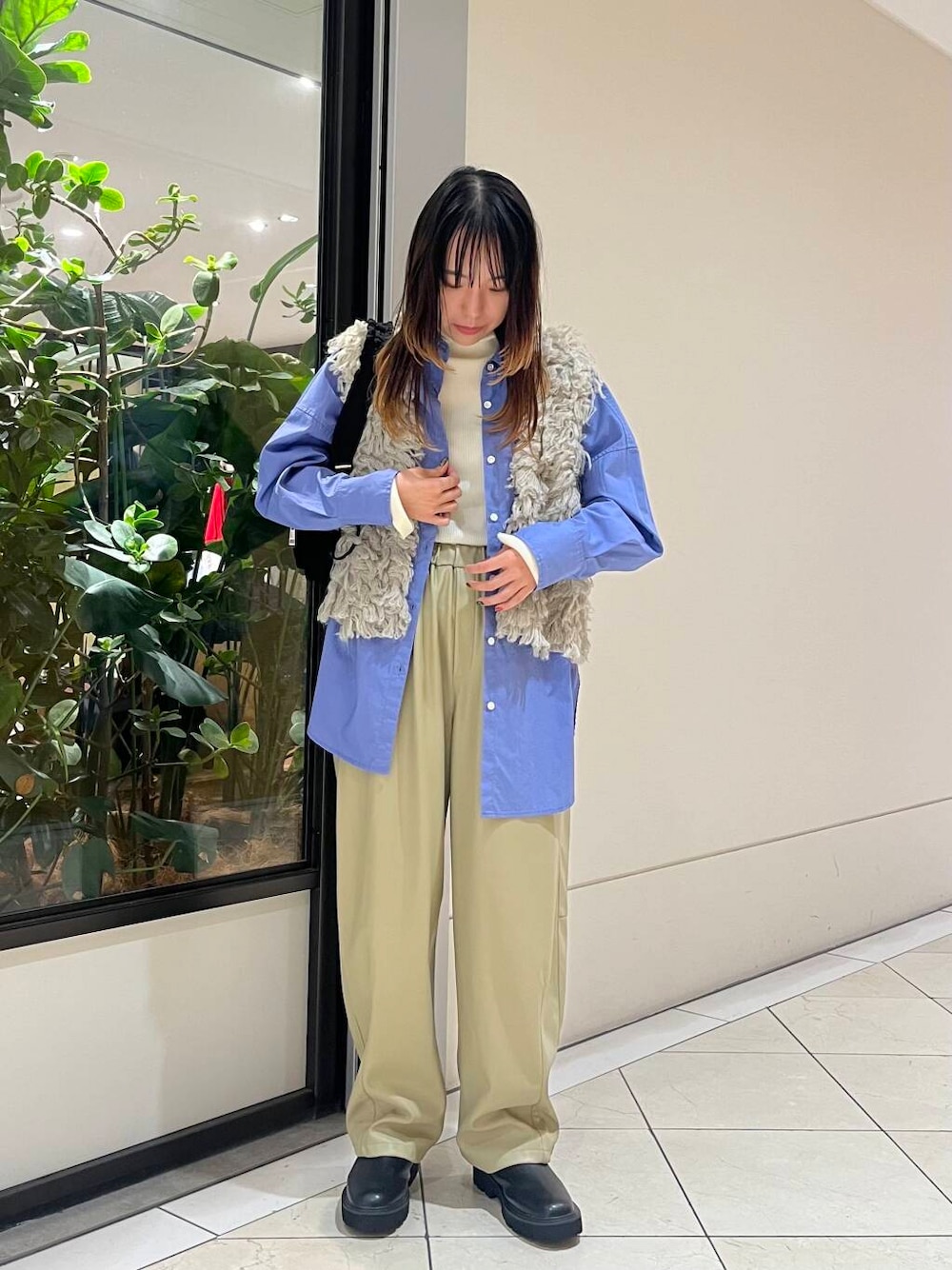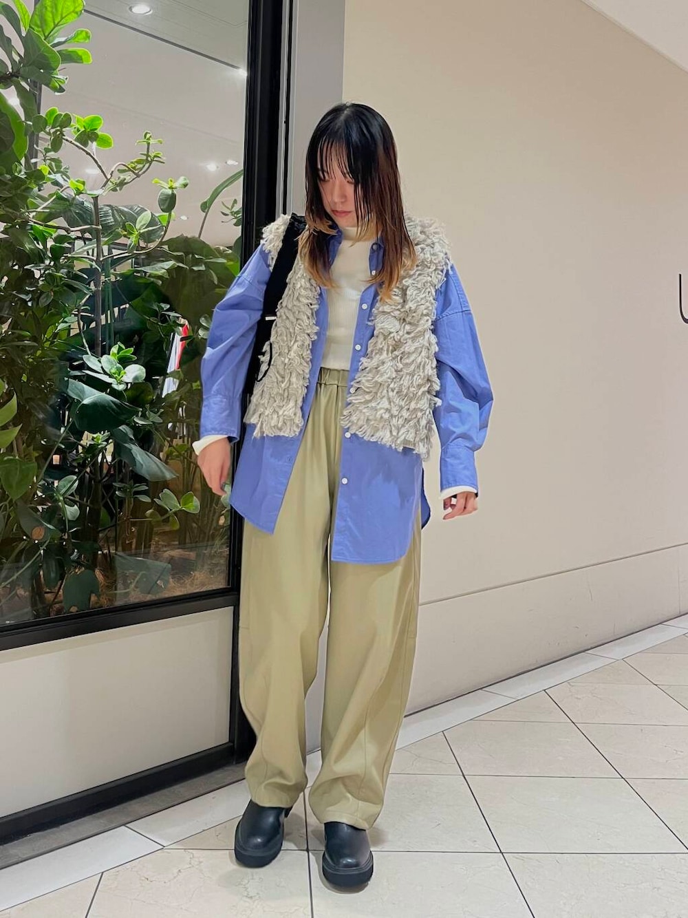 最近少し涼しくなってきたので、ハイネックニットとシャツを重ねてみました!