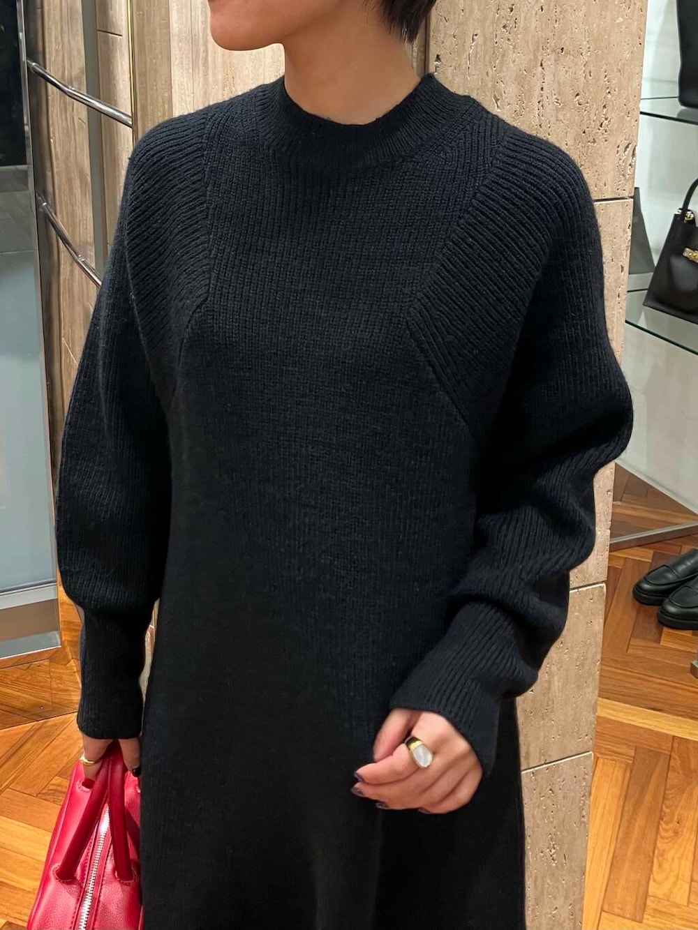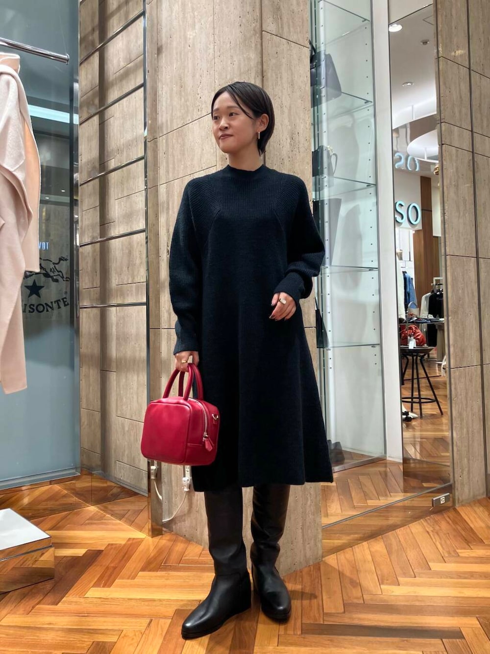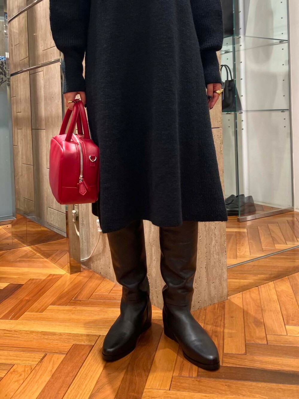差し色に赤のバッグを合わせてみました♩