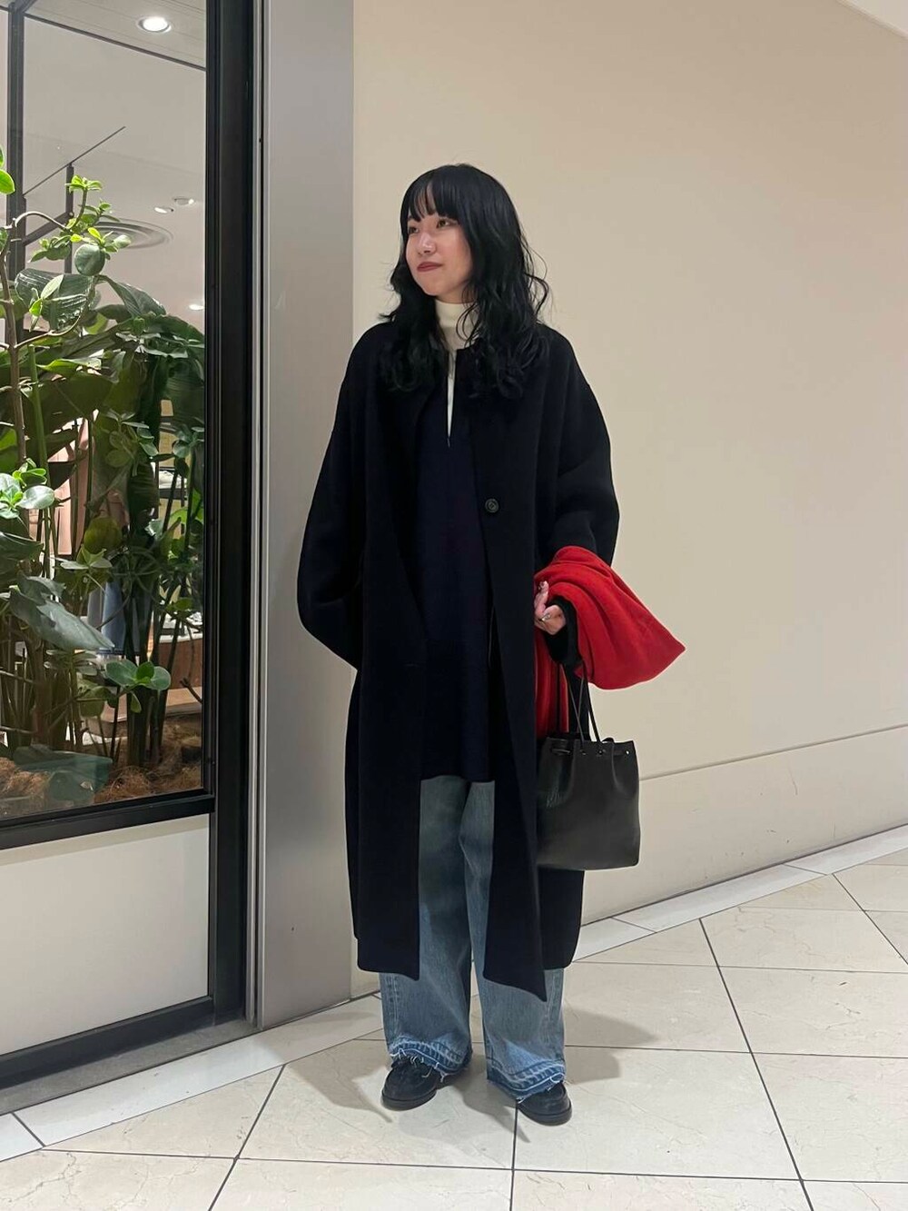 ロングコートですが、軽い着心地であたたかさもしっかり◎