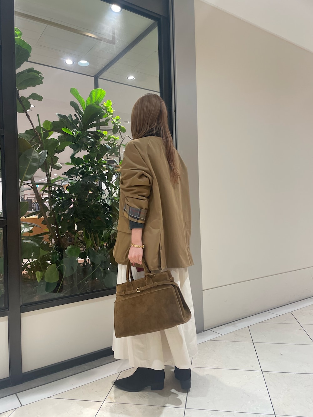 あえてキレイめブーツとバックに合わせるのもカジュアルになりすぎなくておすすめです!