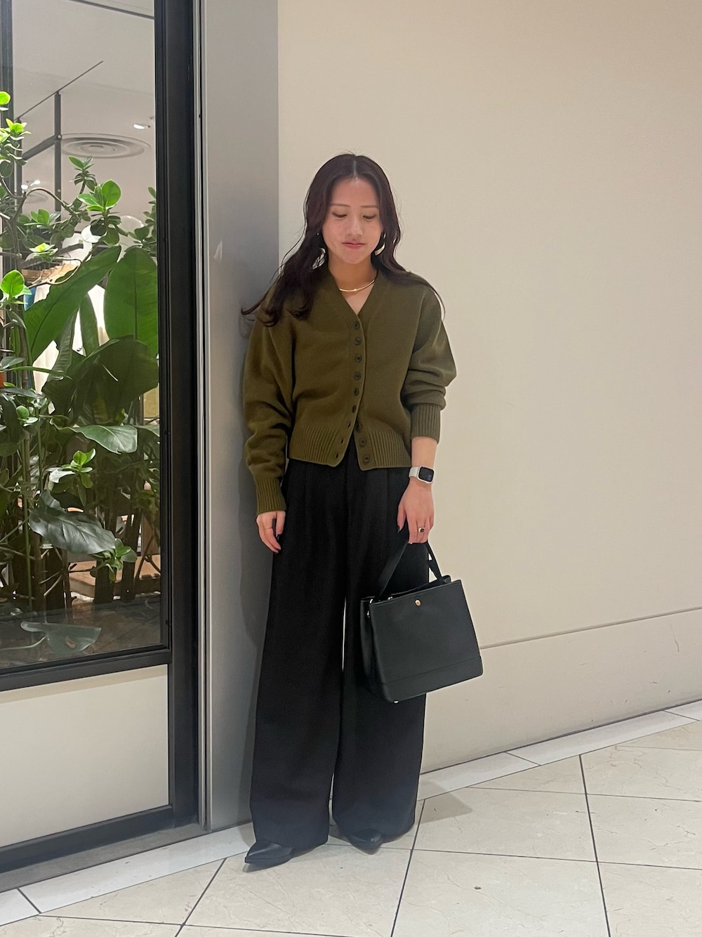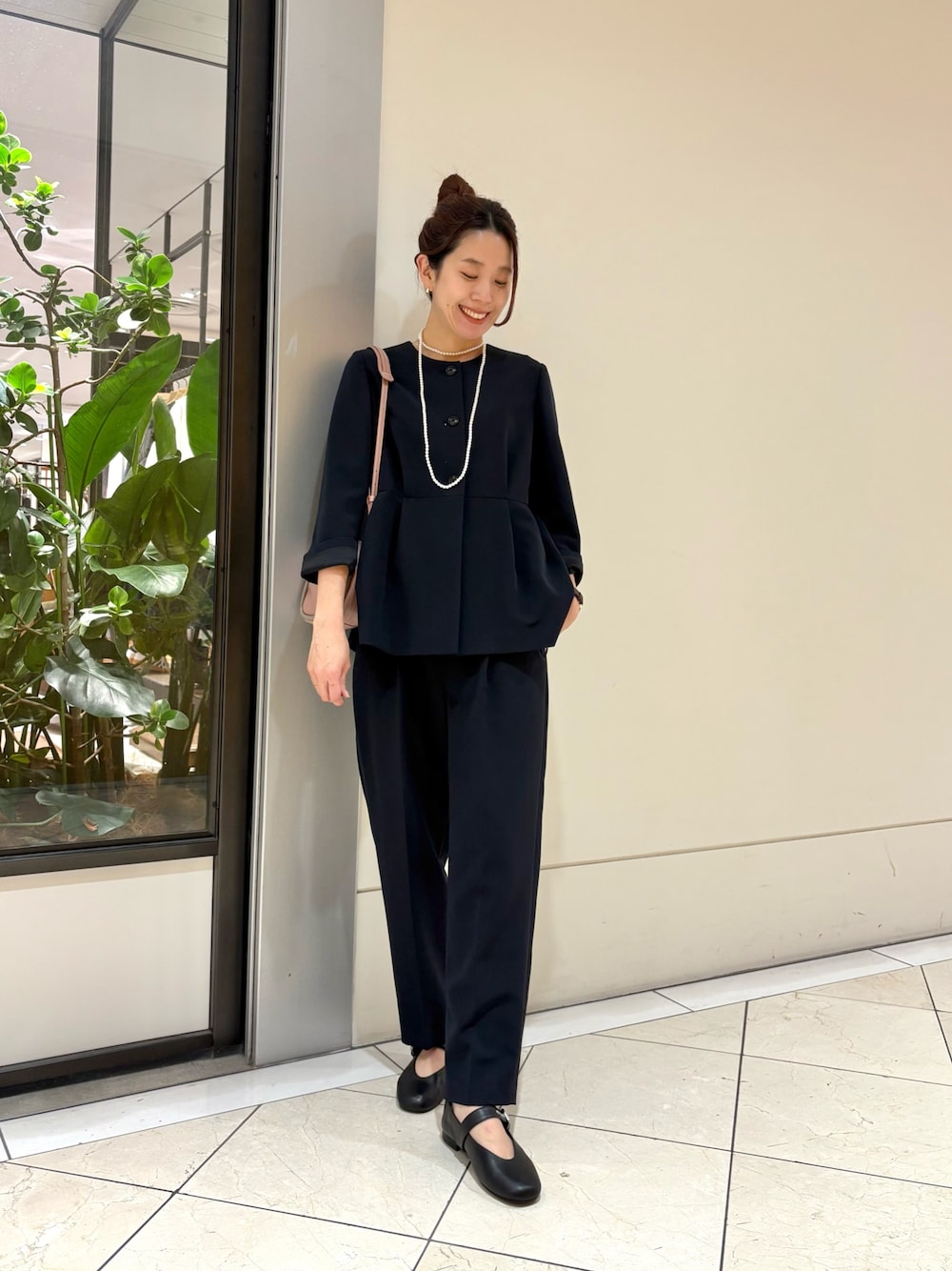 ブルーシャツとゆったりしたパンツでモードな雰囲気に✨