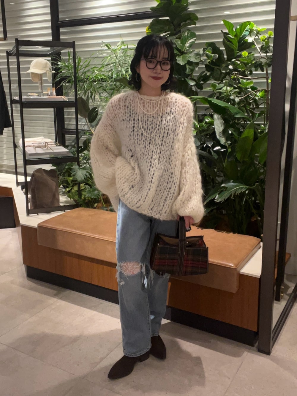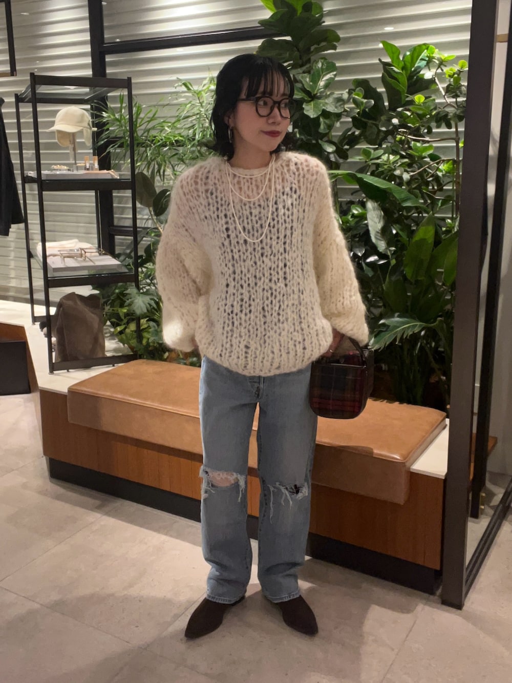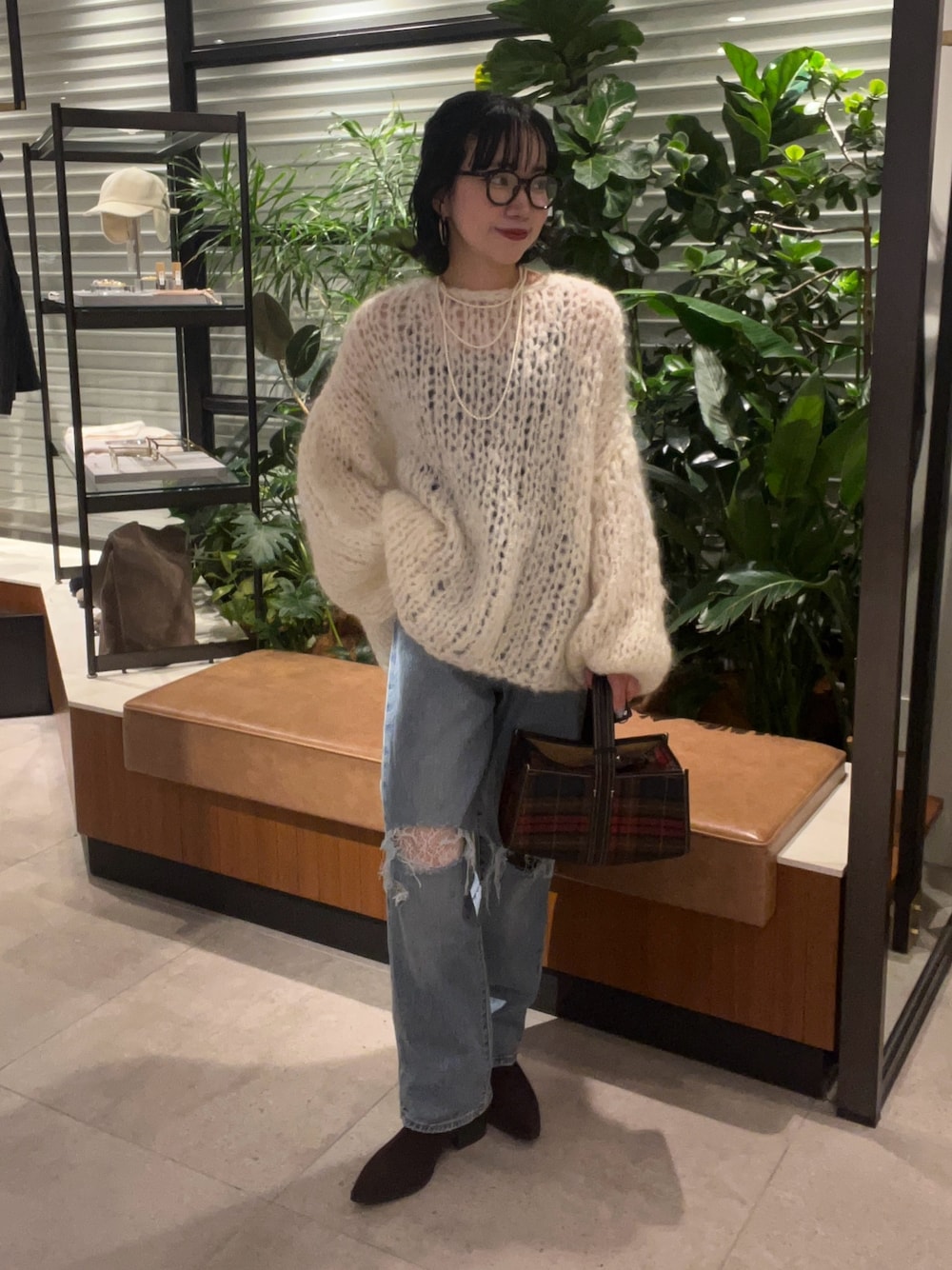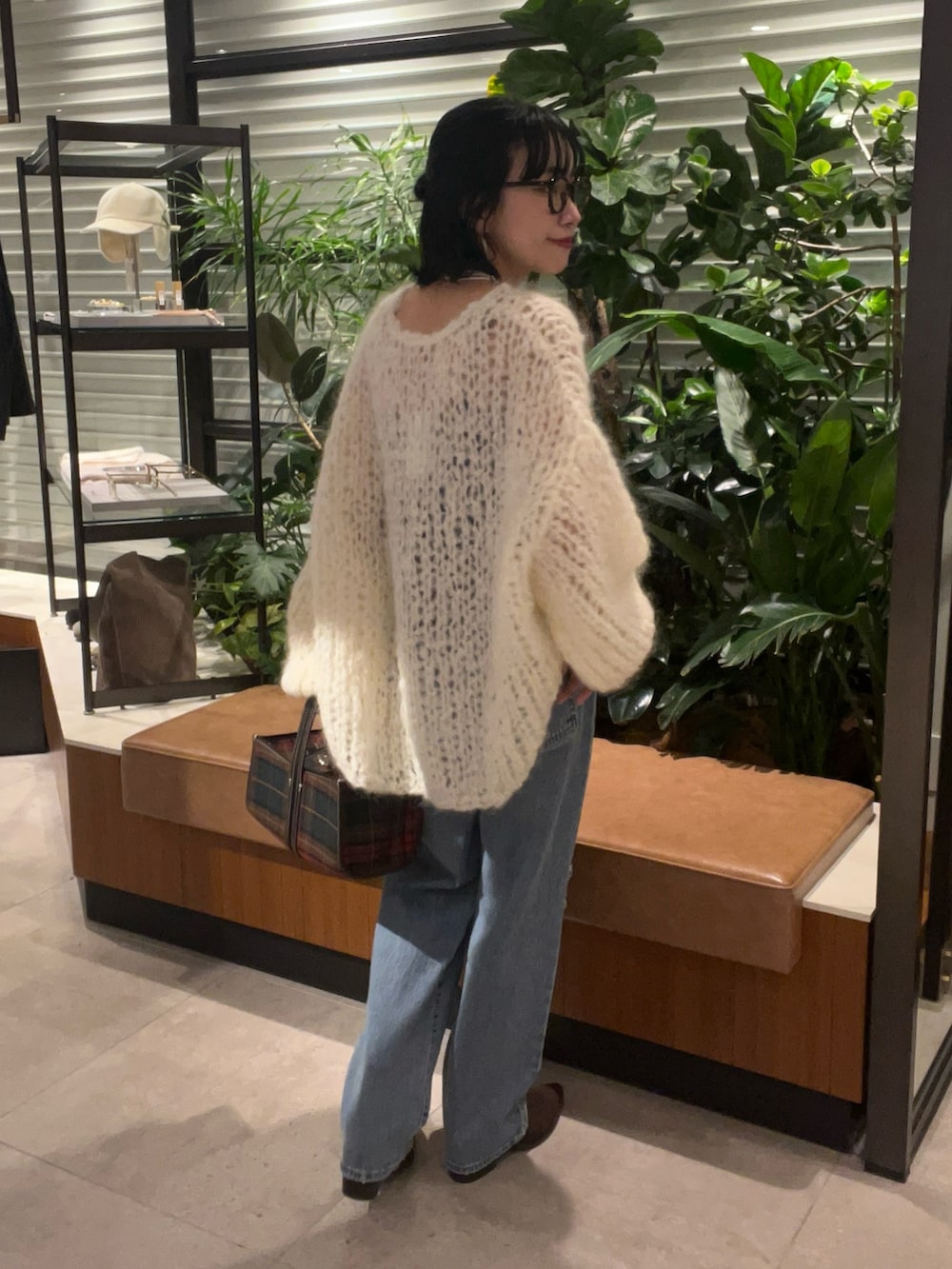 ざっくり編みのゆったりシルエットで一枚で存在感たっぷりです🤍