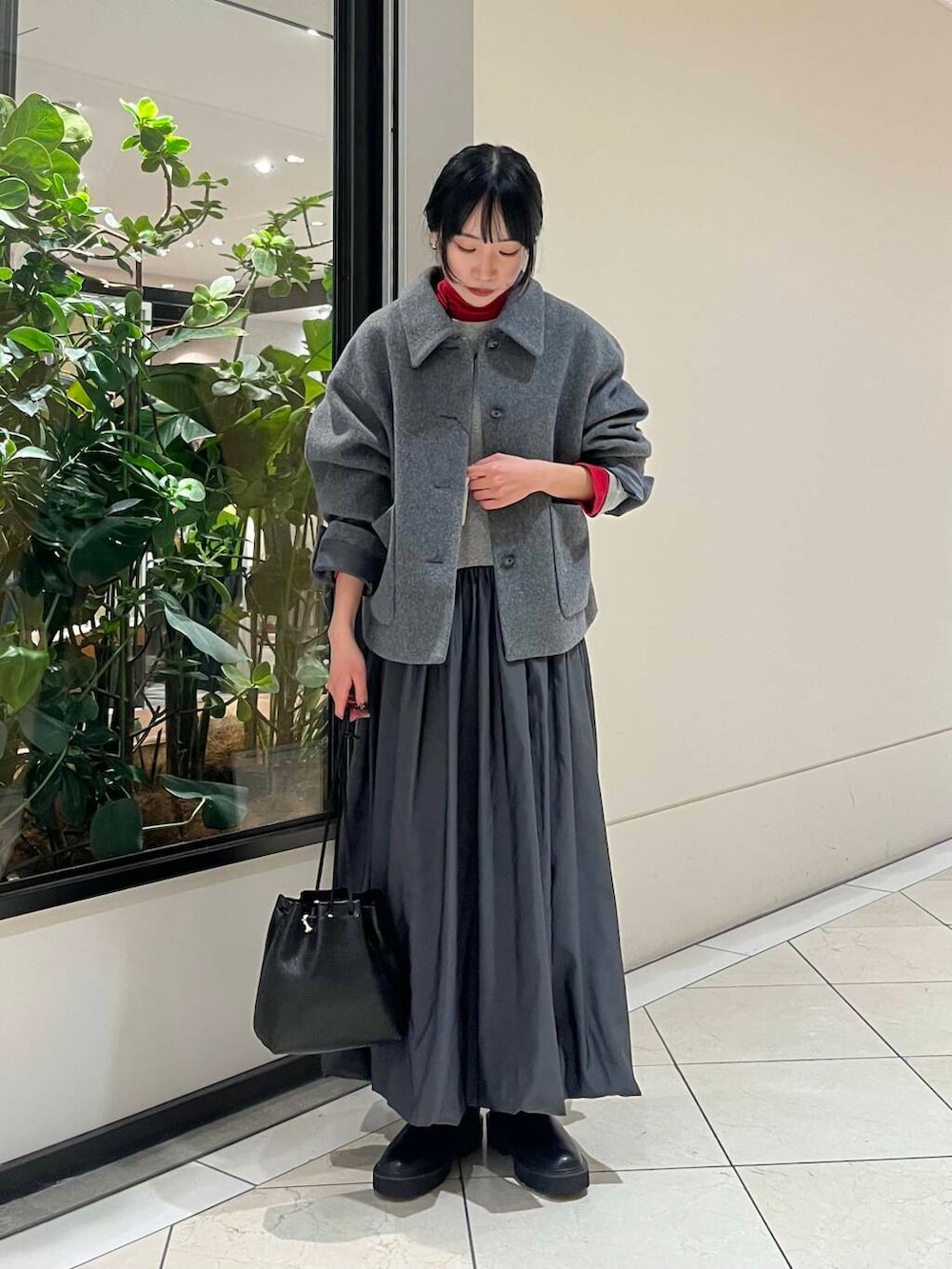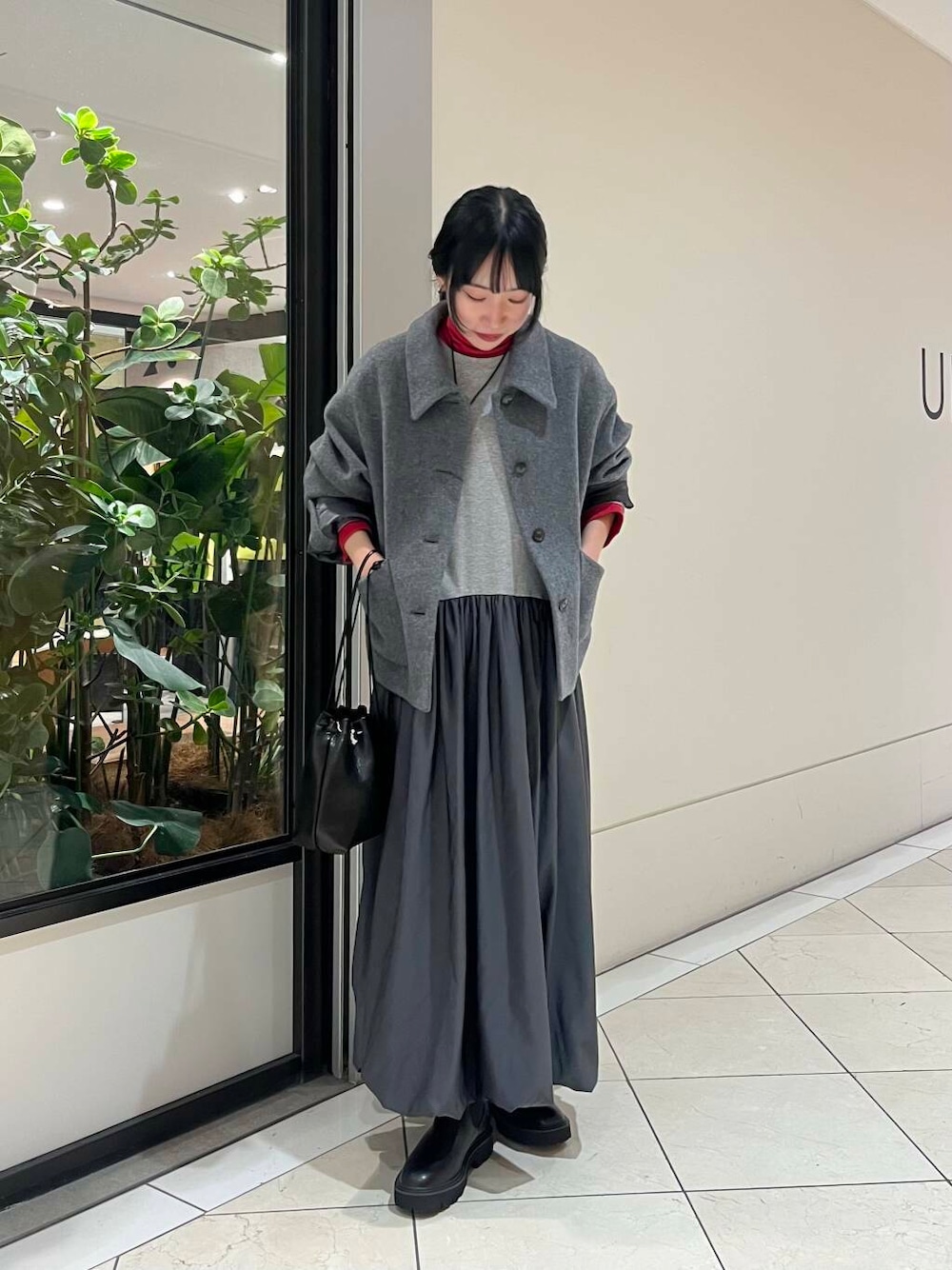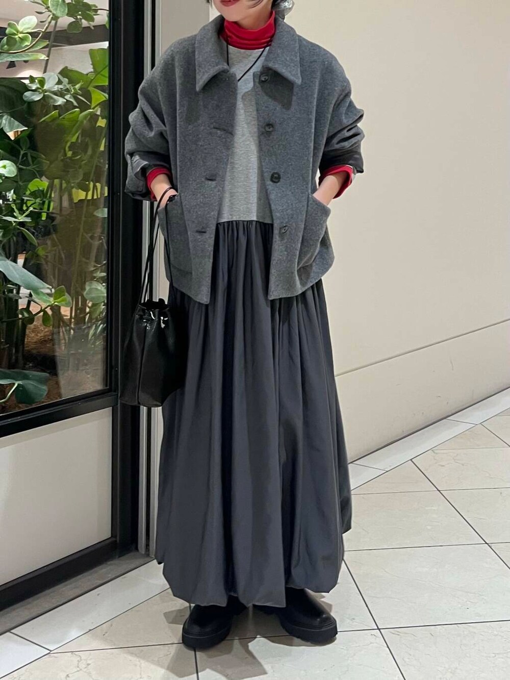 カーディガンと合わせたり、インナーにハイネックを入れたスタイリングもおすすめです◎