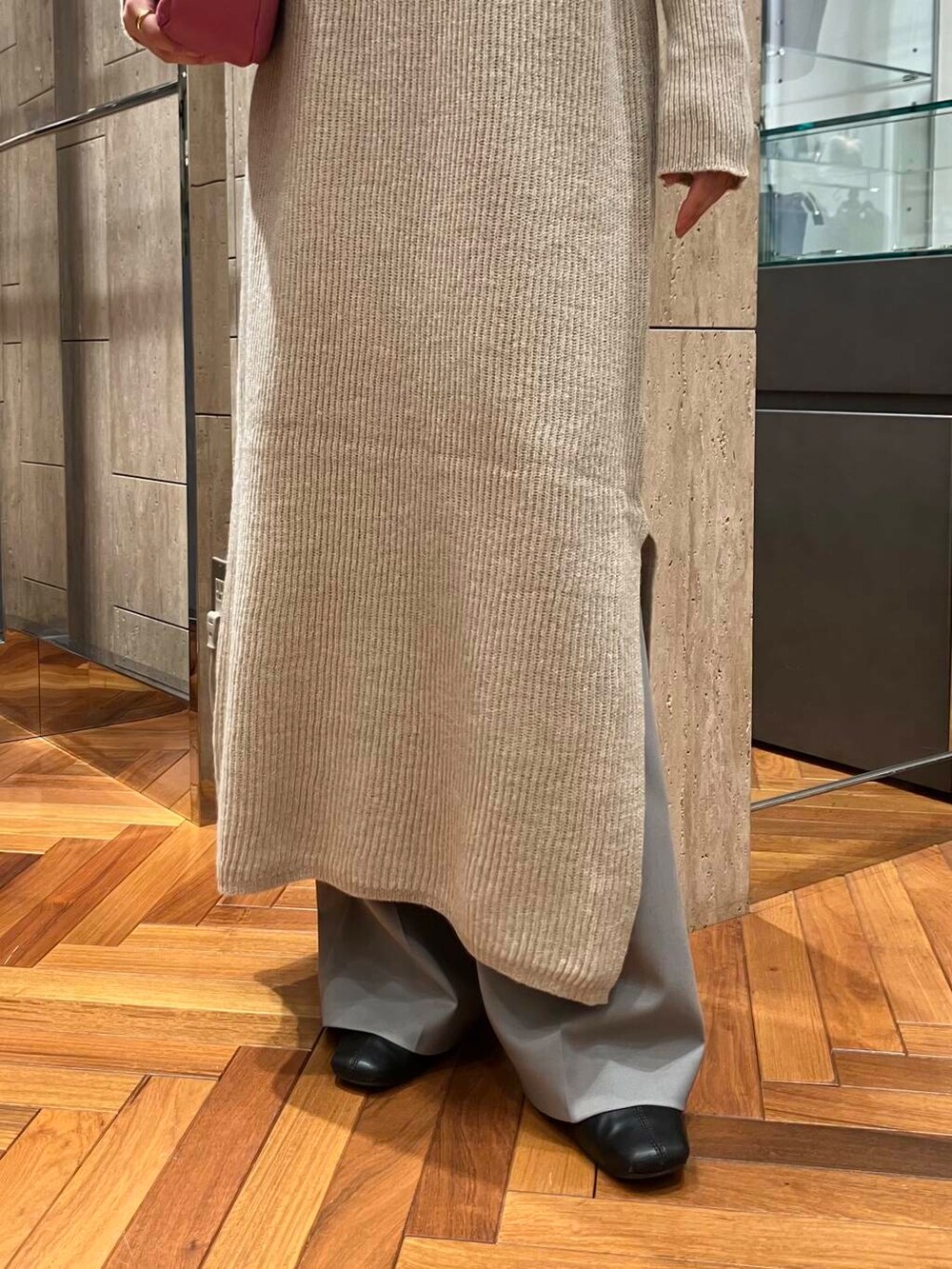 ROSSOヤク混サイドスリット畦ニットワンピース