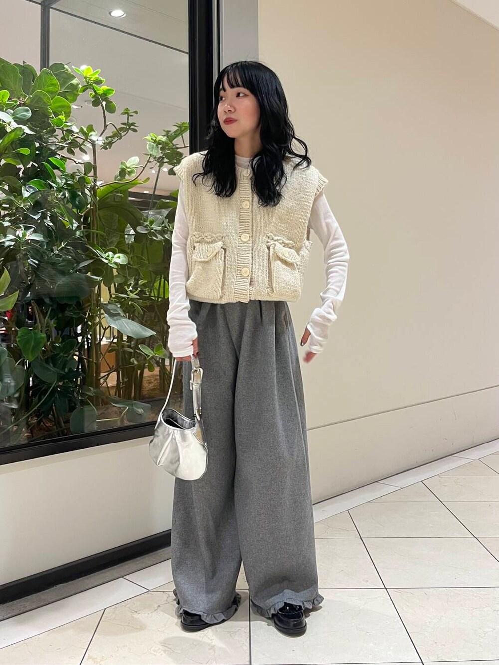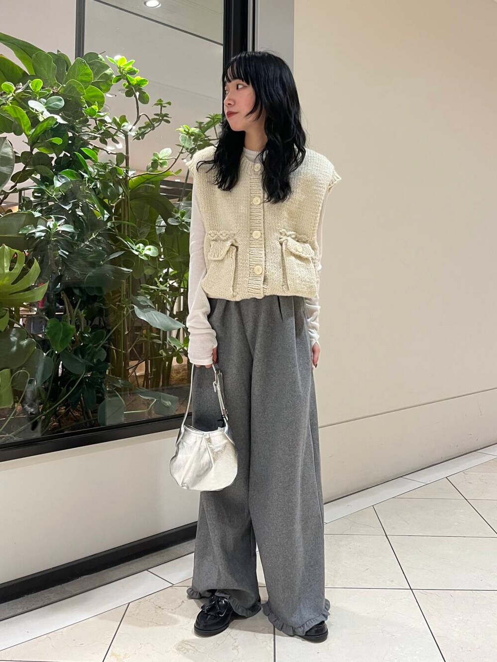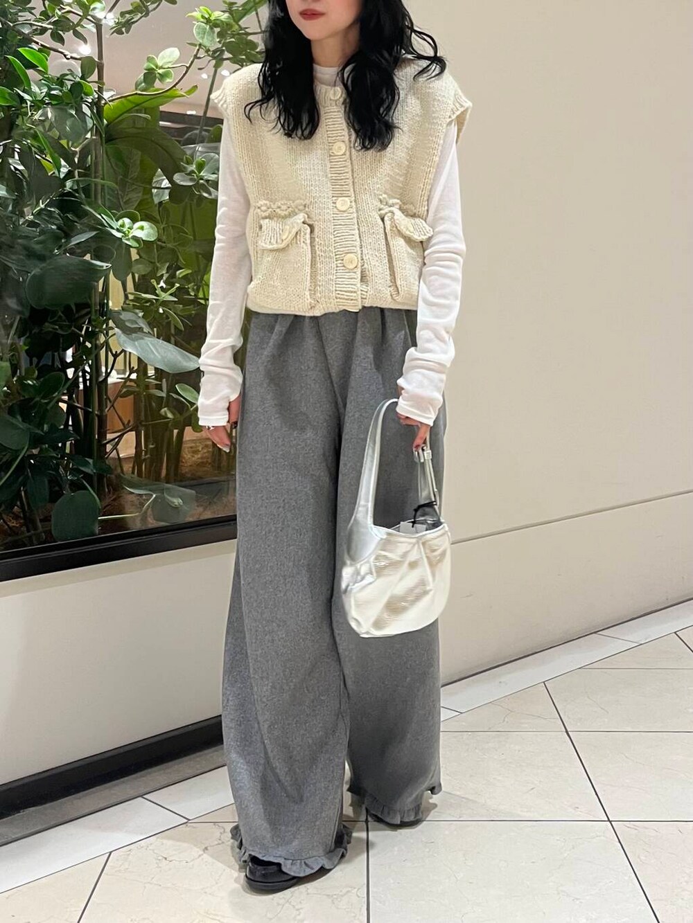 肩のラインは落ちるのでゆとりのあるシルエットに。どんなボトムスにも合わせやすいコンパクトな着丈なのも嬉しいポイントです🎶