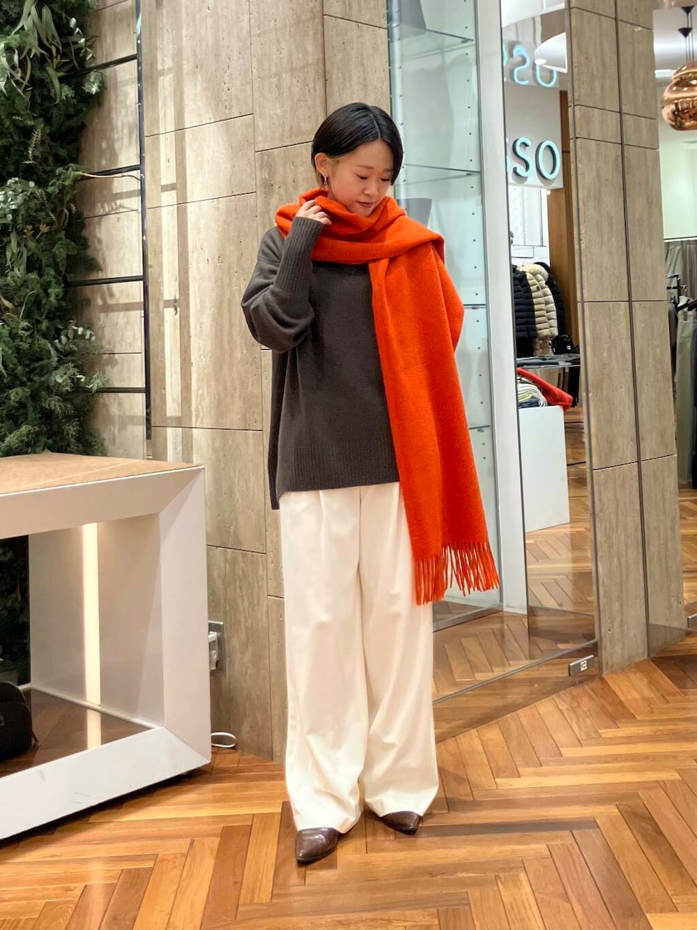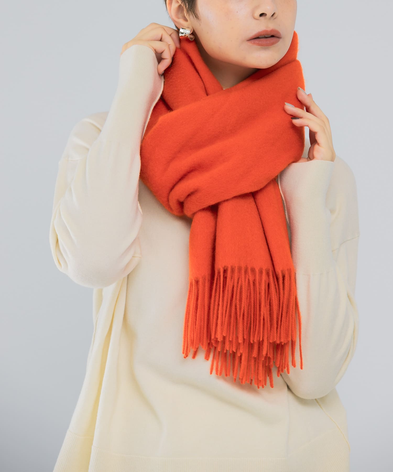 このカシミヤストールのオレンジが