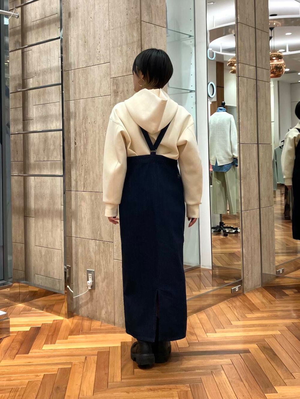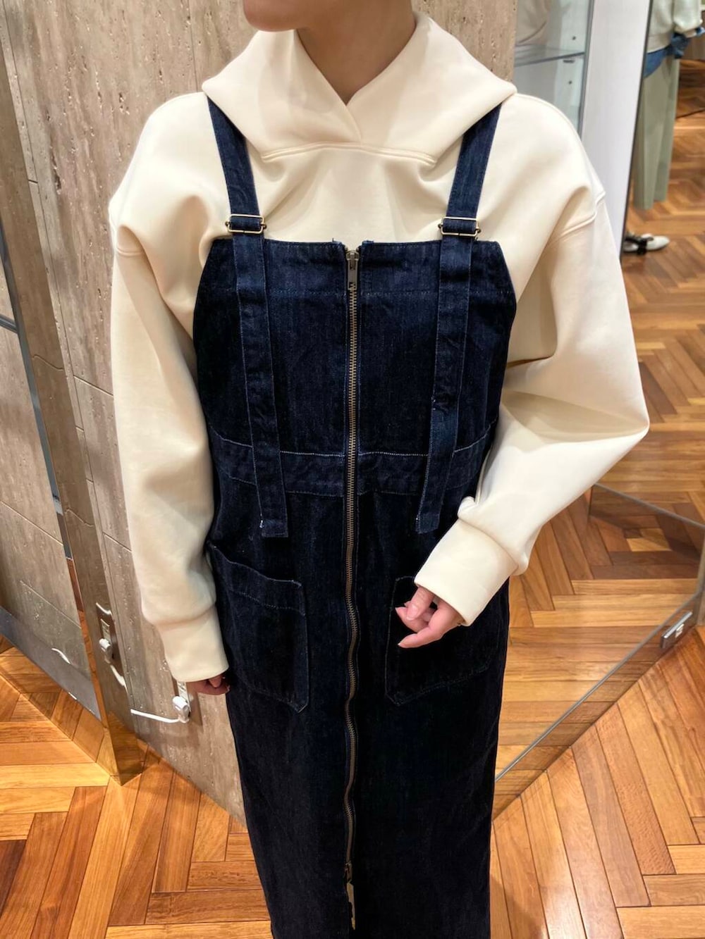 ダンボール生地のゆったりめパーカーと