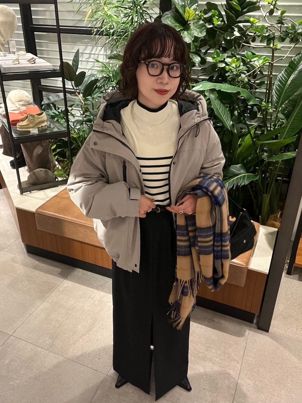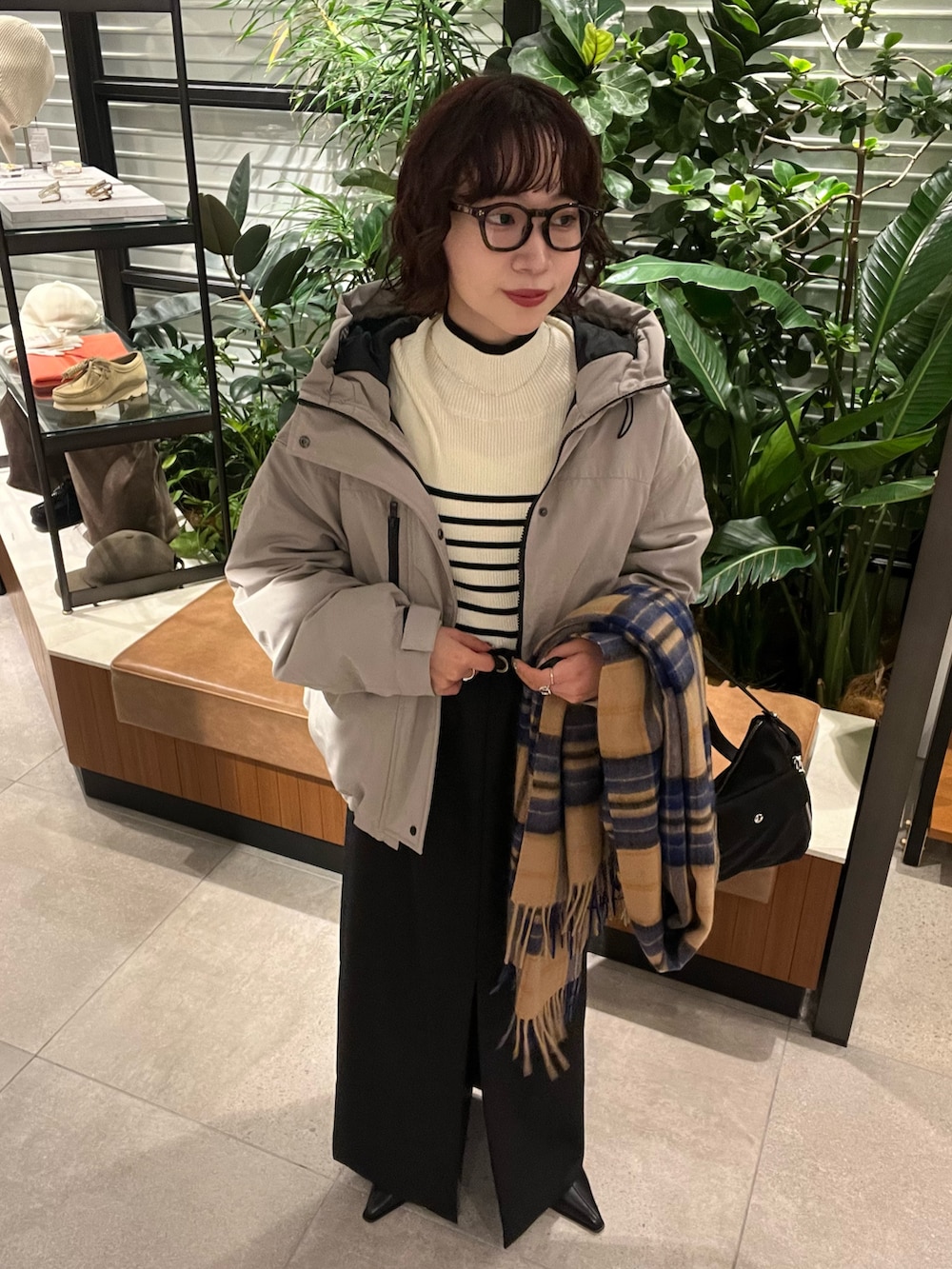 ダウンステッチがないことでカジュアルさを抑えることができ、またグレージュというカラーがキレイめなお洋服にも馴染みやすいこちらのダウンは、撥水機能もついていて、着回し力だけじゃなく機能面もばっちりです✨