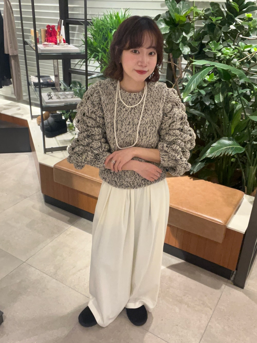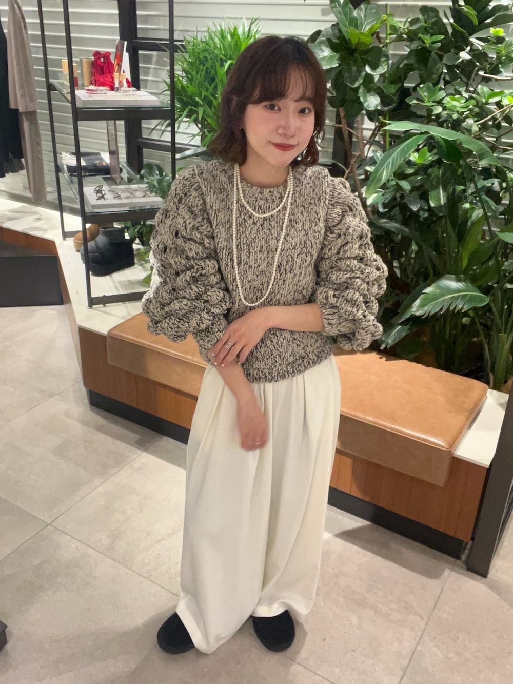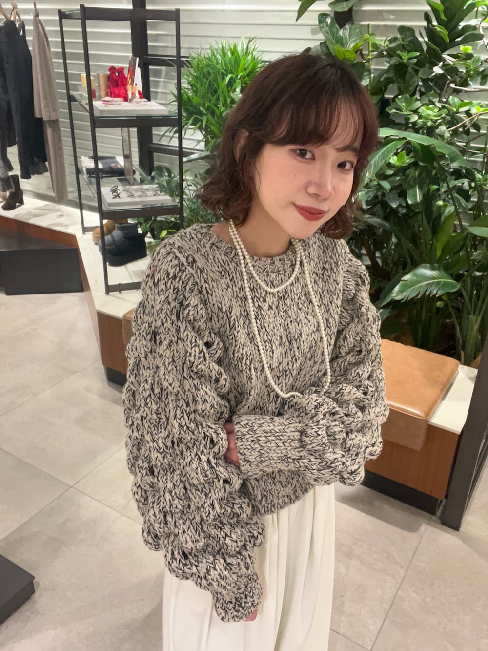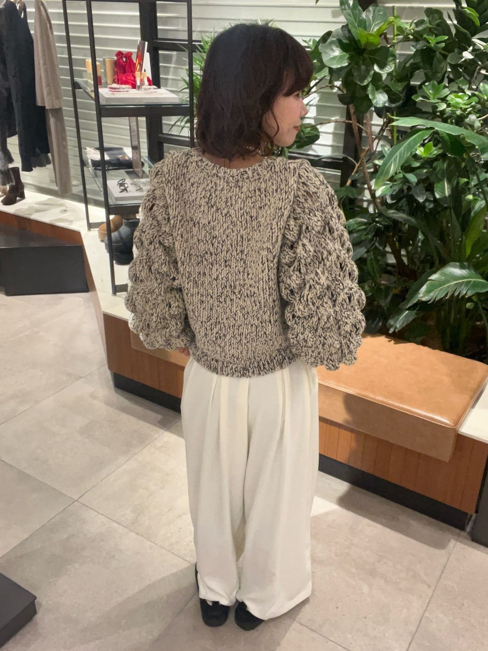 袖のボリューム感とポコポコしたデザインな1枚で存在感たっぷりです♩