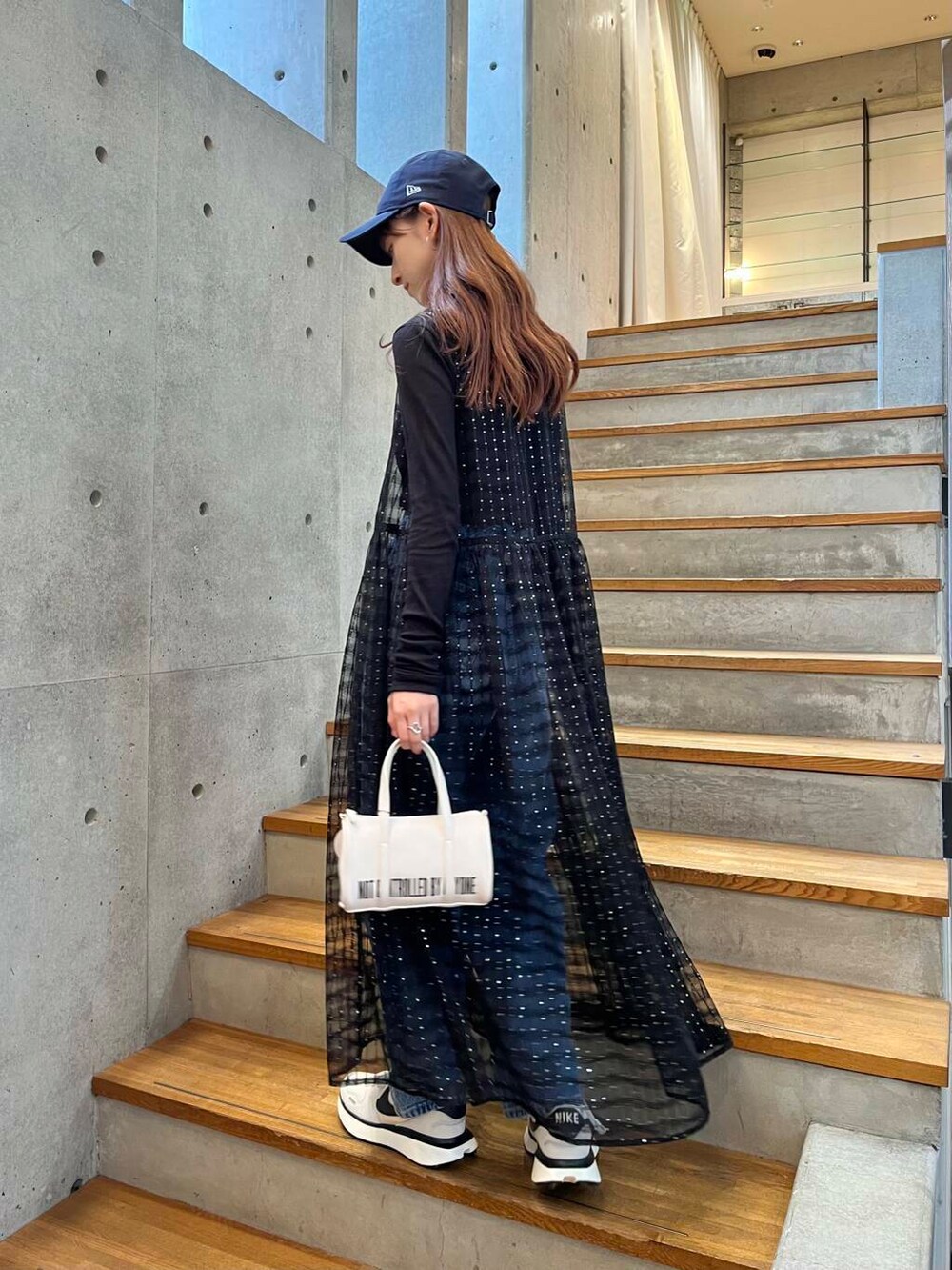 一点取り入れるだけで華やかに見えるレイヤードワンピースです🖤