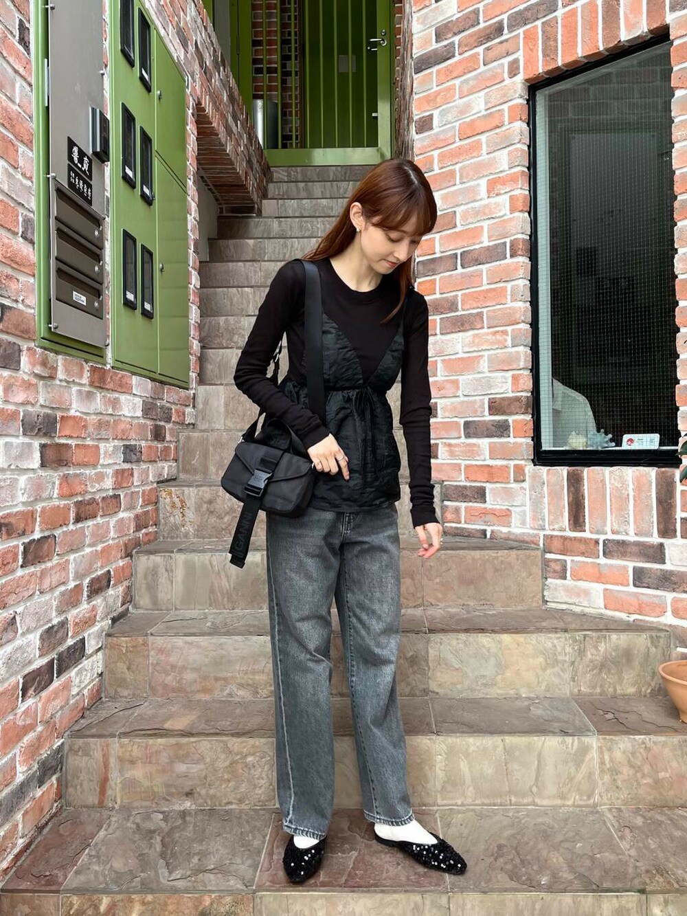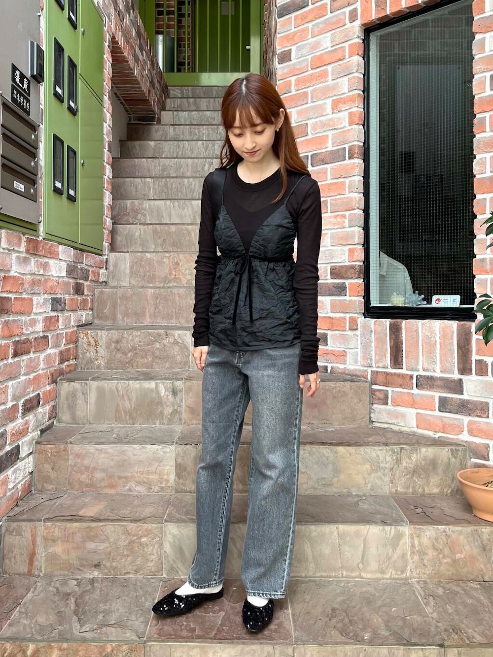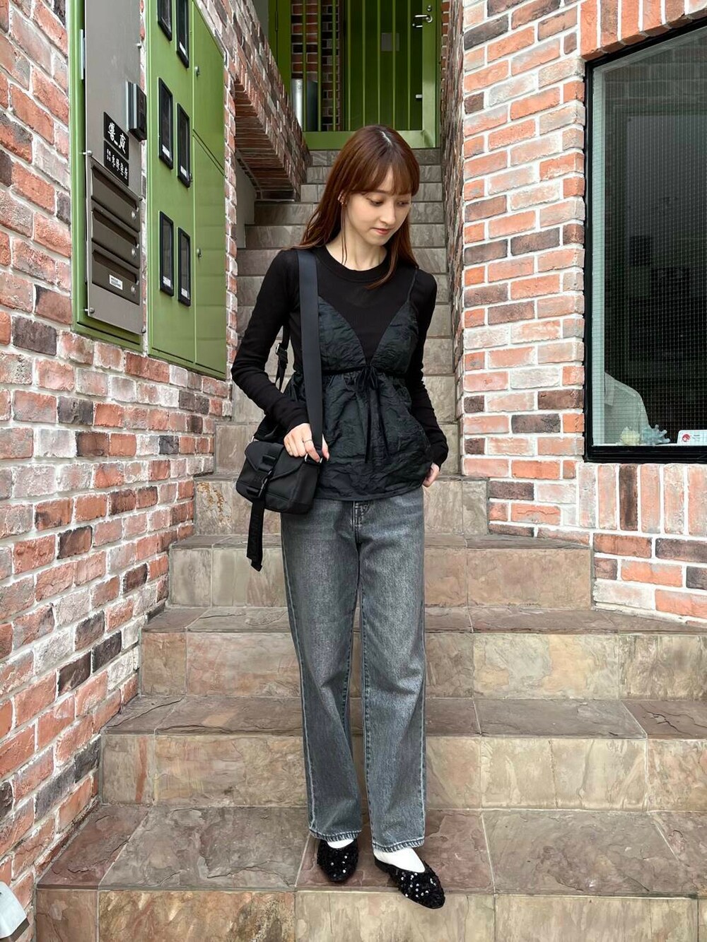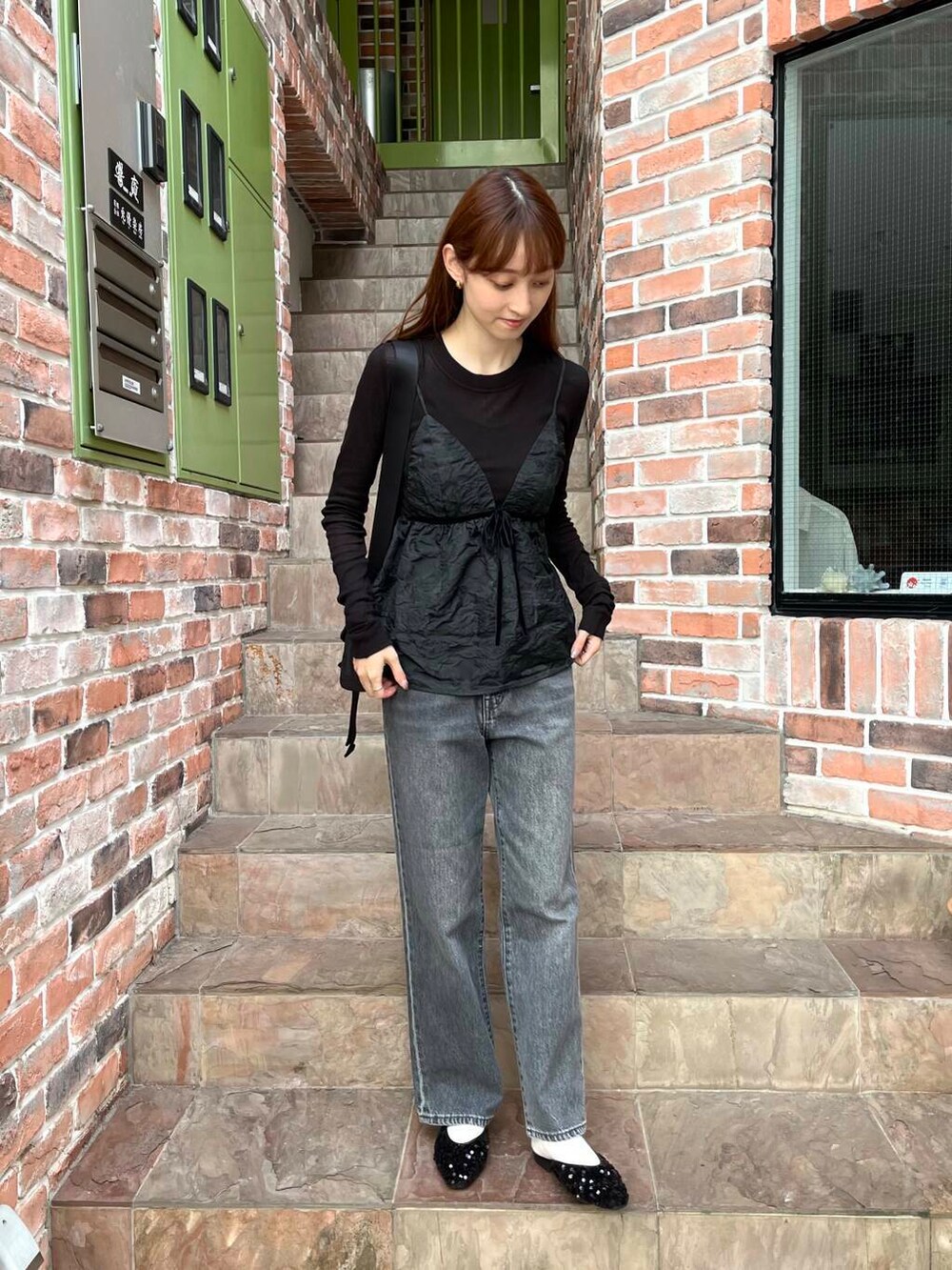 ジャガード柄のキャミトップスをワントーンで合わせてモードな印象に🖤
